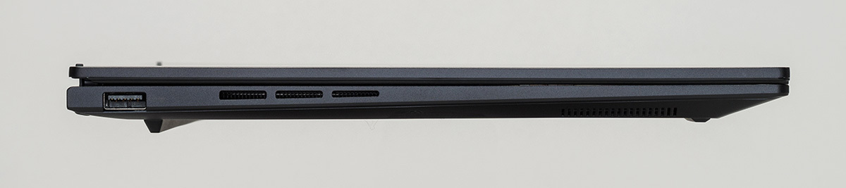 インターフェースは本体左側面にUSB 3.2 Gen1 Type-Aが、右側面にはUSB 3.2 Gen2 Type-C(データ転送、映像出力、Power Delivery対応)、USB4(データ転送、映像出力、Power Delivery対応)、マイクロホン/ヘッドホン兼用端子、HDMI 2.1端子が搭載されている。