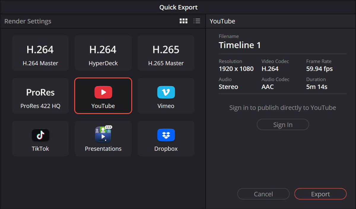 そこで、動画編集ソフト「DaVinci Resolve」を使って、その実力をチェックしてみることにした。用意した素材はスマホで撮影した4K/60fpsの動画で、長さは5分14秒のもの。これを、プリセットの「YouTube」で書き出してどのくらい時間がかかるかを計測してみた。
