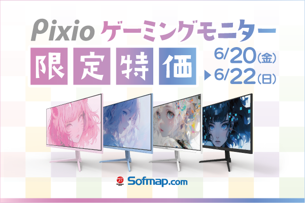 ソフマップは、6月20日から6月22日までの3日間限定で、Pixioの人気ゲーミングモニターを特価で販売する。