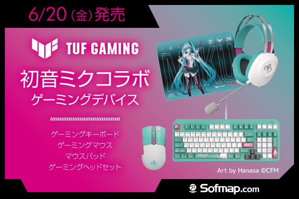 ソフマップは6月20日より、ASUS TUF GAMINGと初音ミクのコラボレーションによるゲーミングデバイスの販売を開始すると発表した。