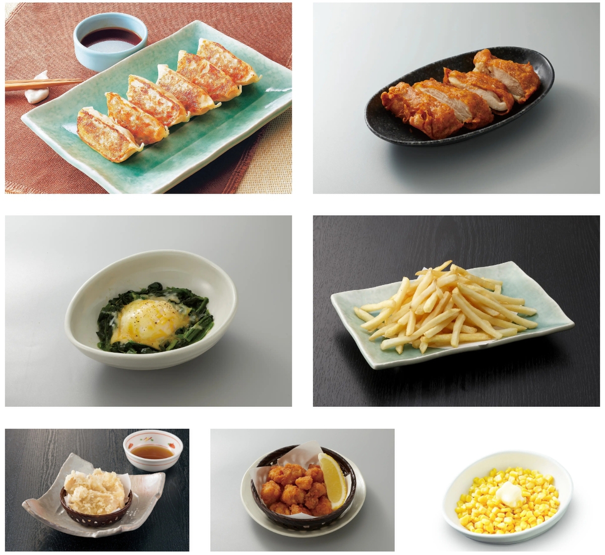 さらに、「焼ぎょうざ」「さとチキ」「ほうれん草エッグ」「ポテトフライ(ケチャップマヨ/てりマヨ)」「ふわふわ鶏天(3枚)」「鶏軟骨の唐揚げ」「バターコーン」などの一品料理を218円(本体価格199円)の均一価格で販売します。
