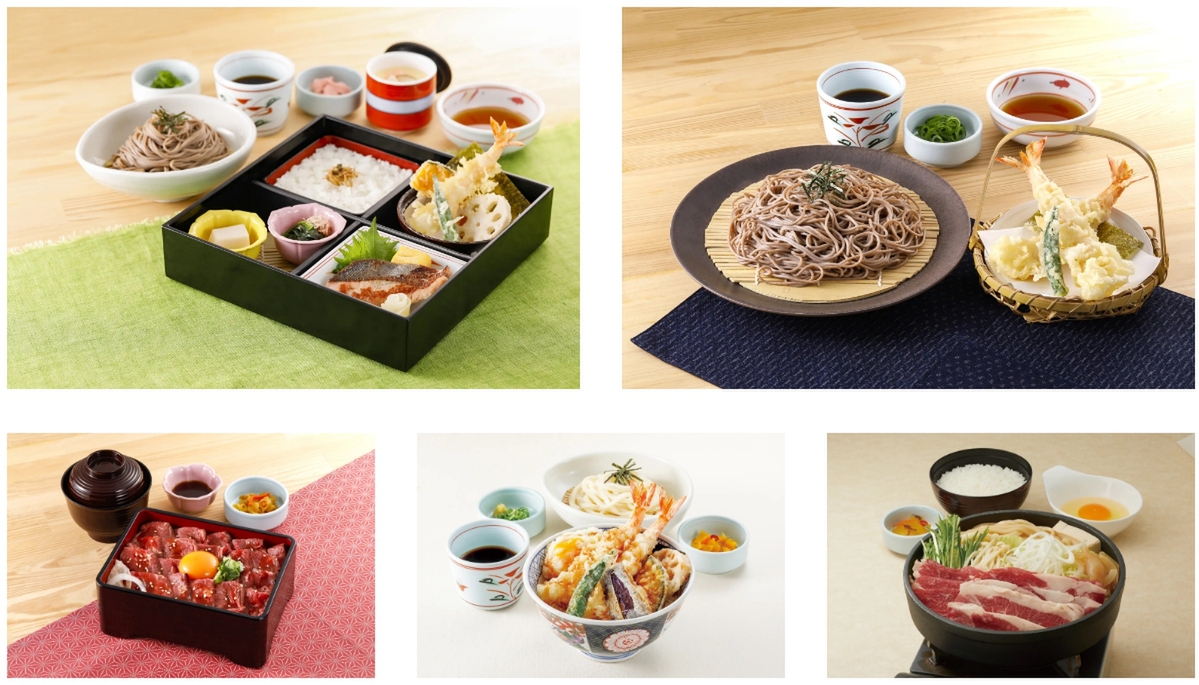 本キャンペーンでは、「お昼のさと和膳」「大海老天ざるそば/うどん」「ローストビーフ重」「大海老天丼」「牛すきうどん鍋定食」など人気の5品を218円(本体価格199円)引きで販売します。「ローストビーフ重」と「大海老天丼」は単品・セットの両方が対象です。