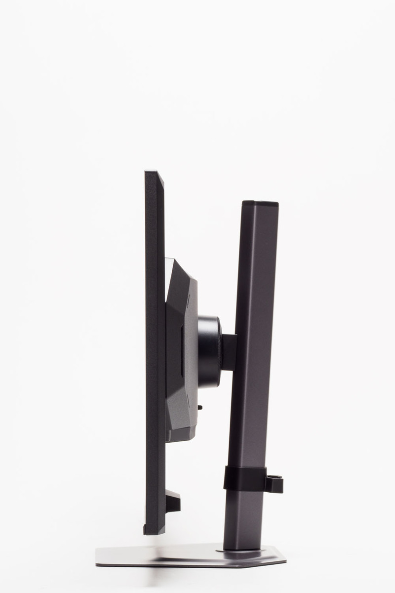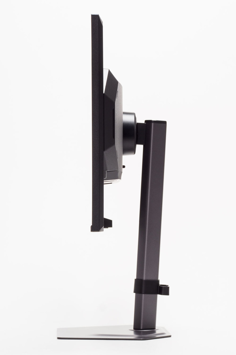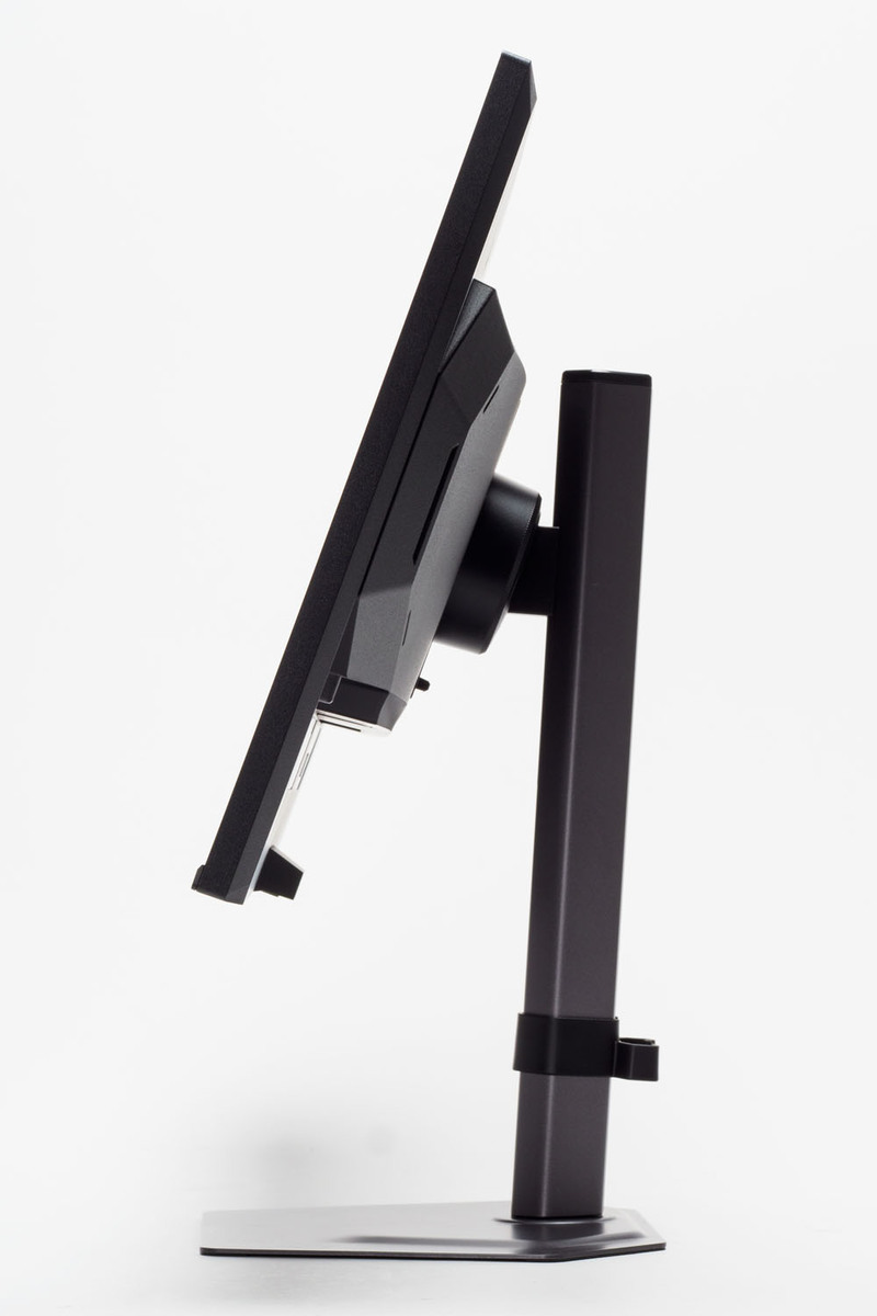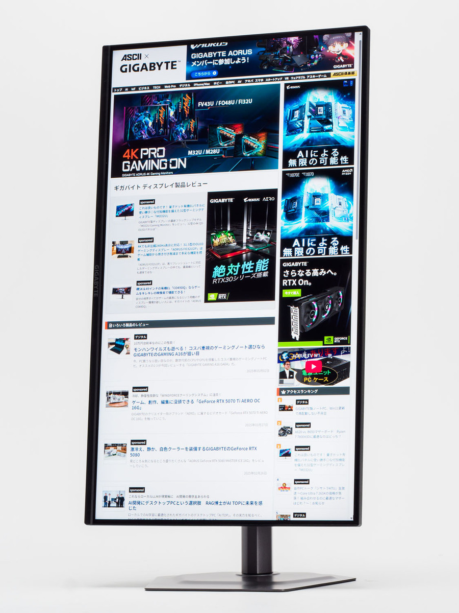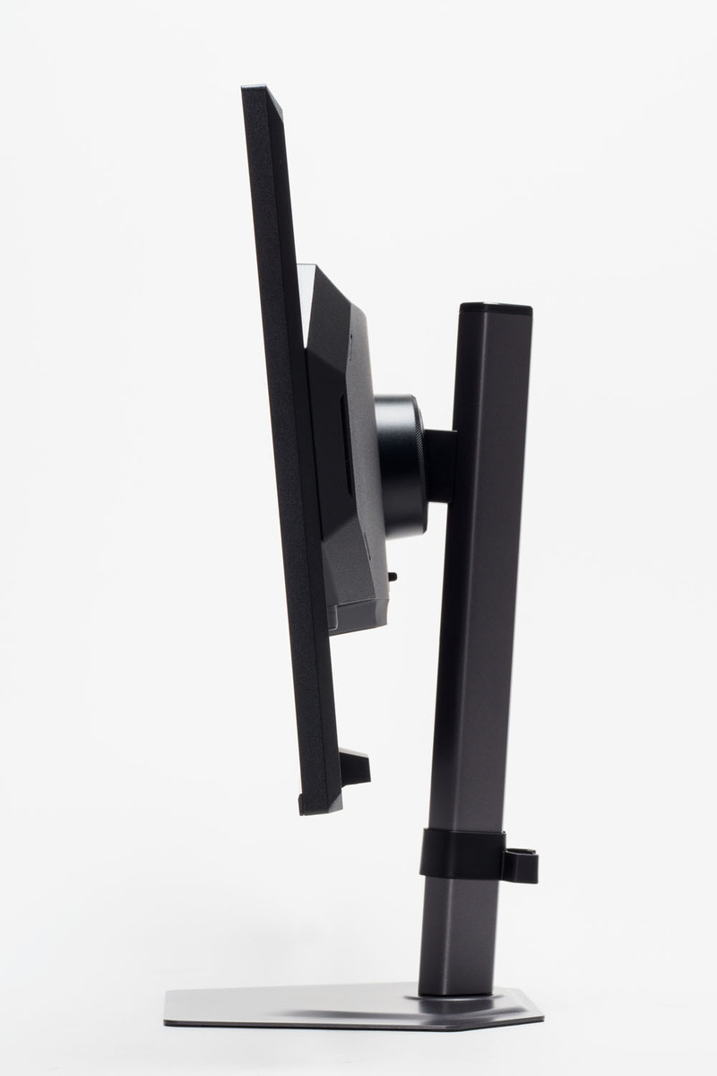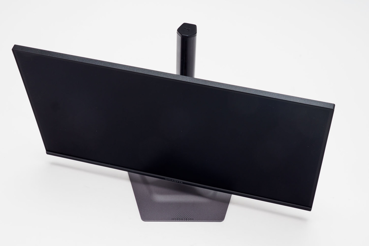 素直に良いと感じる点が豊富な「G25F2」。そのひとつが金属素材を使ったスタンドになる。シンプルなデザインだが、安定感抜群なスタンドベースに、動きスムーズなアームでベストな位置にディスプレーを調節できる。