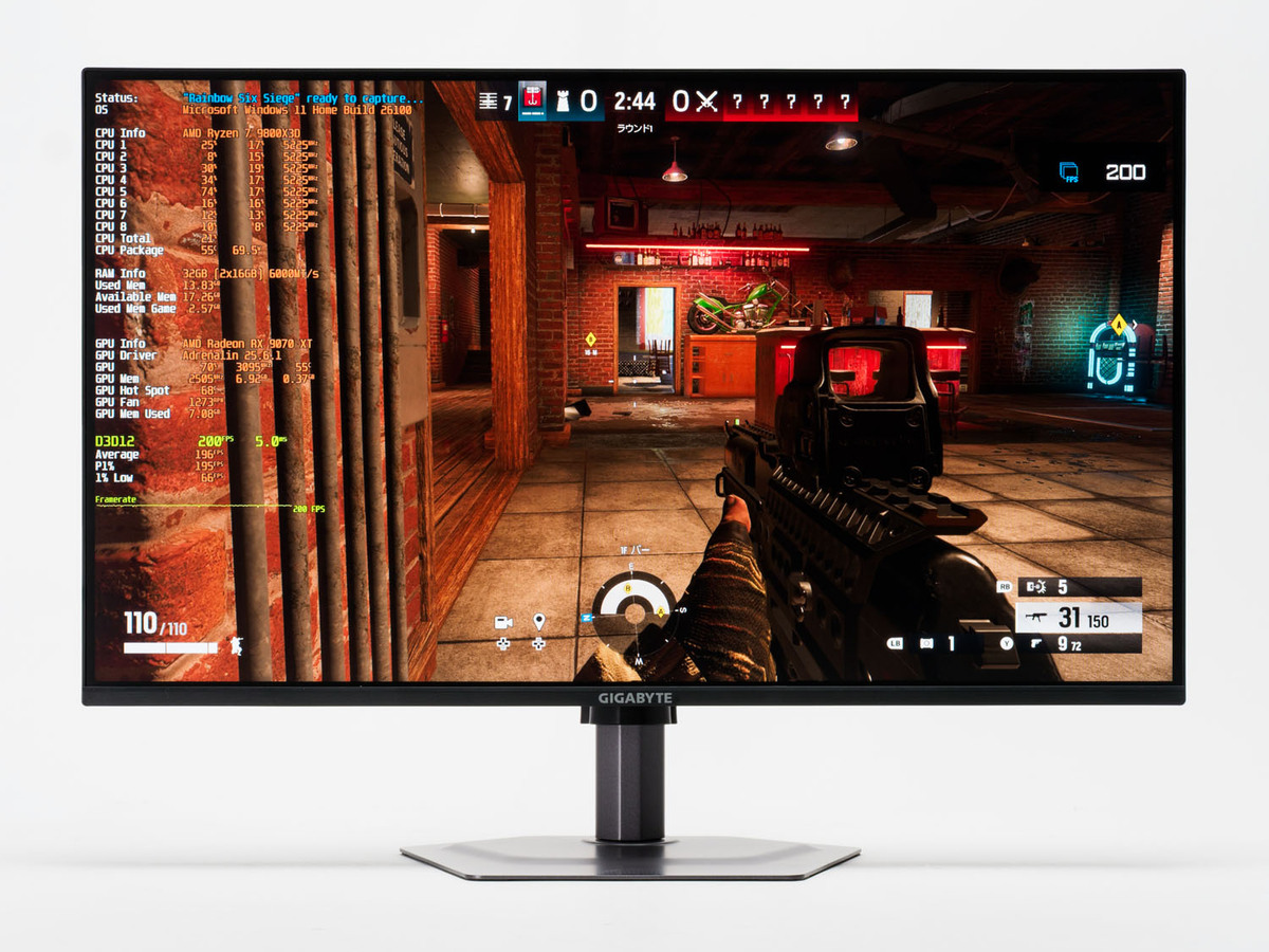 リフレッシュレート200Hz駆動を活かすためには、200fpsの高フレームレートを維持できるスペックのPCが必要になる点は忘れてはならない。とは言え、「エーペックスレジェンズ」や、「レインボーシックス シージエックス」といったタイトルは、最新のGeForce RTX 5060や、Radeon RX 9060 XTを搭載するミドルクラスビデオカードで、十分フルHD、200fpsを実現可能となっているので安心だ。