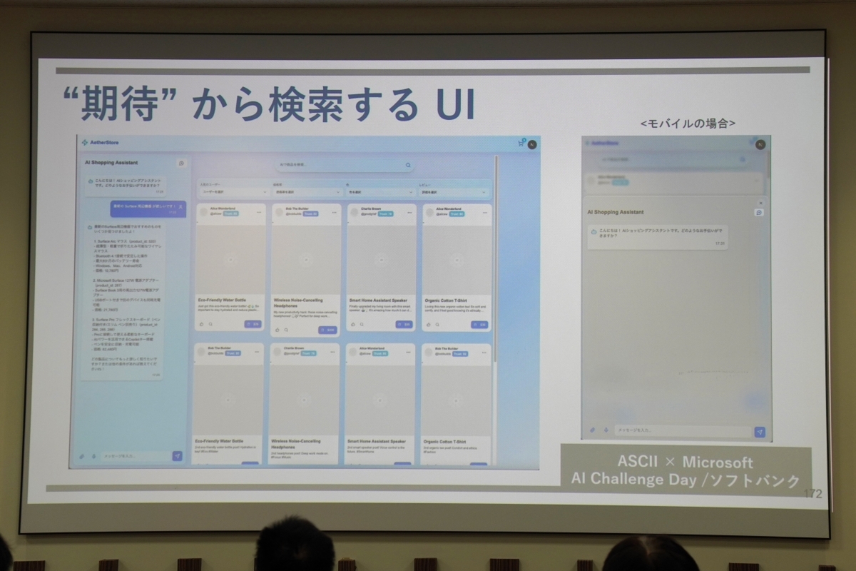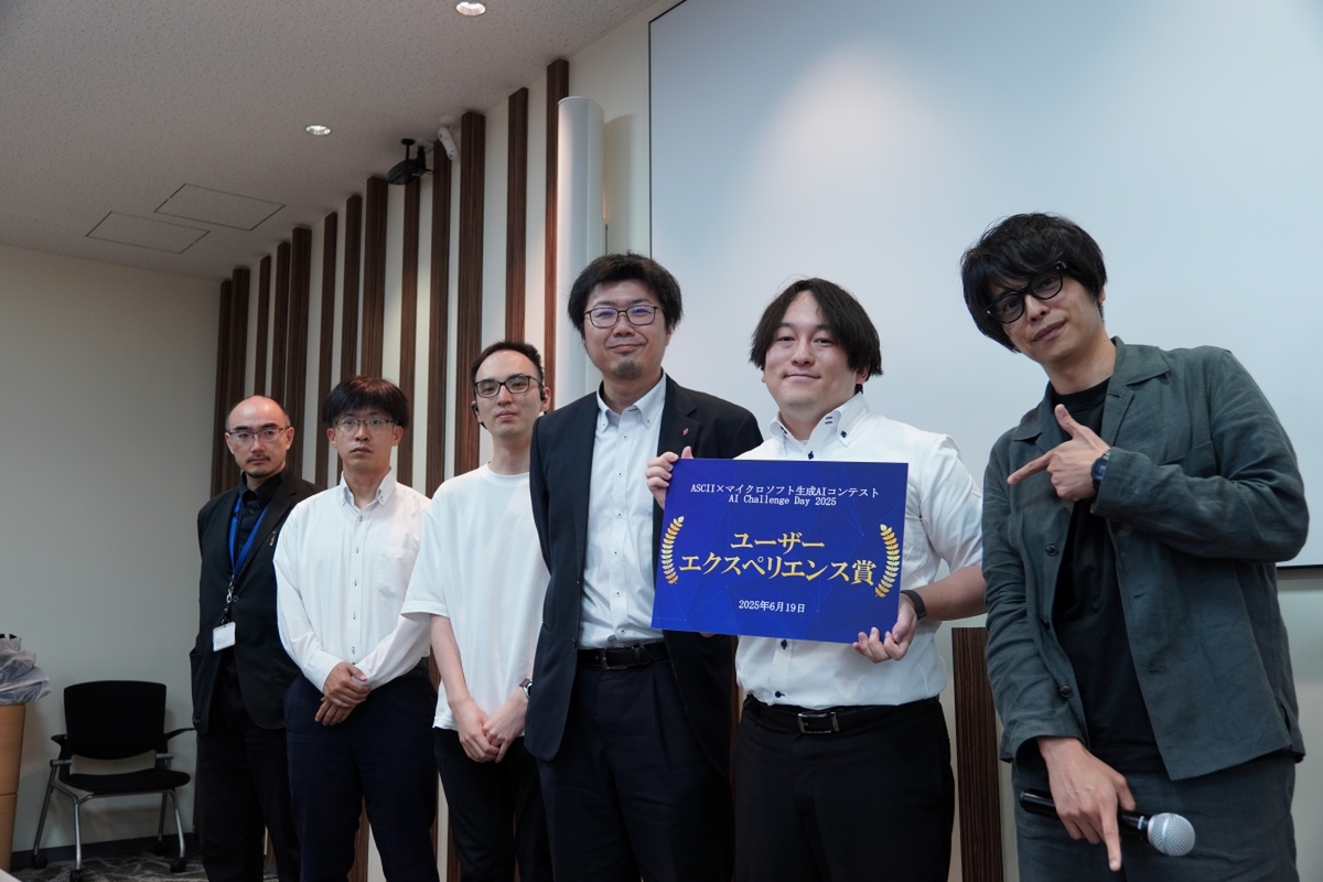 続いて、優れたUI・UXを実装した「UX賞」は……ソフトクリエイト/ecbeing/ATLEDの合同チームが選ばれた。マイクロソフトの岡田義史氏は、「心を打たれたのは、興味のありなしを2つのボタンで表現したデモ。人の判断したくないという感情を後押しするその可能性を、一緒に追い求めたい」とコメントした。