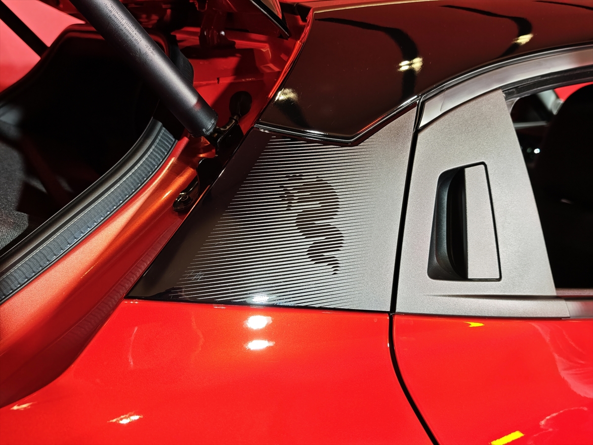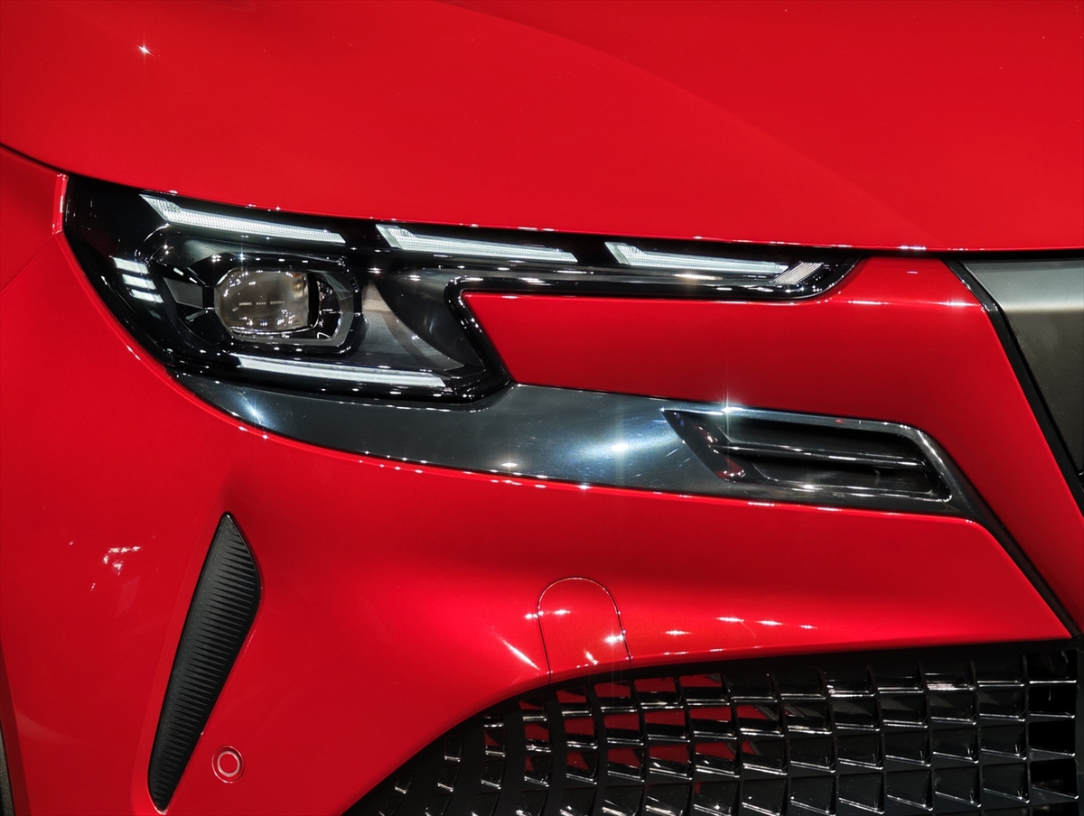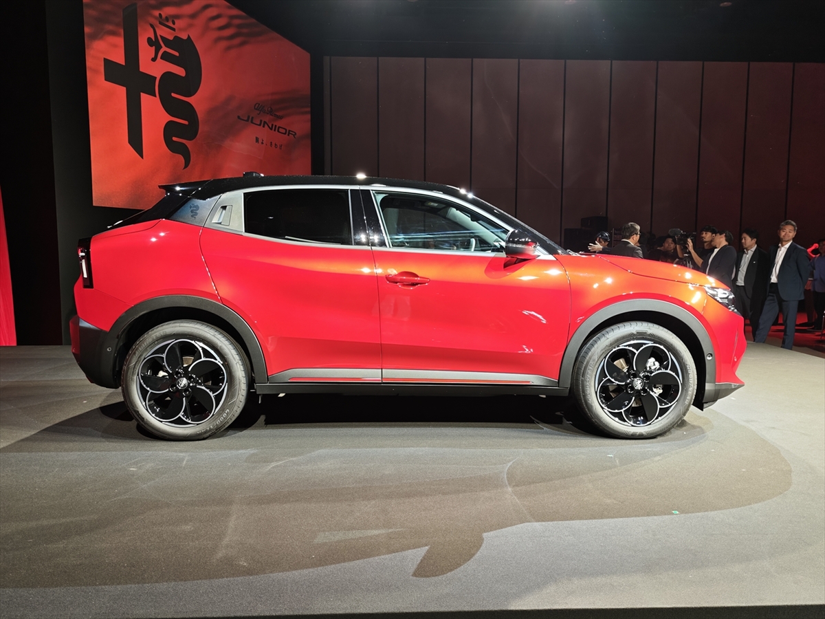 チーフエクステリアデザイナーのボブ・ロムケス氏によれば、ジュニアのデザインはアスリートをイメージした曲線をまとった美しいシルエットが特徴で、航空力学を取り入れたイタリアの美学と情熱が凝縮されているといいます。単なる直線や平面は存在せず、影と光のコントラストで動きとダイナミズムを表現する「スカルプチュラルなデザイン」が採用されています。特に、ヘッドランプは「ジュニアの瞳」として特徴的な3×3のライティングシグネチャーを持ち、中央の「スクデット」はブランド初のEVという新しいテクノロジーへの移行を告げる存在だそうです。