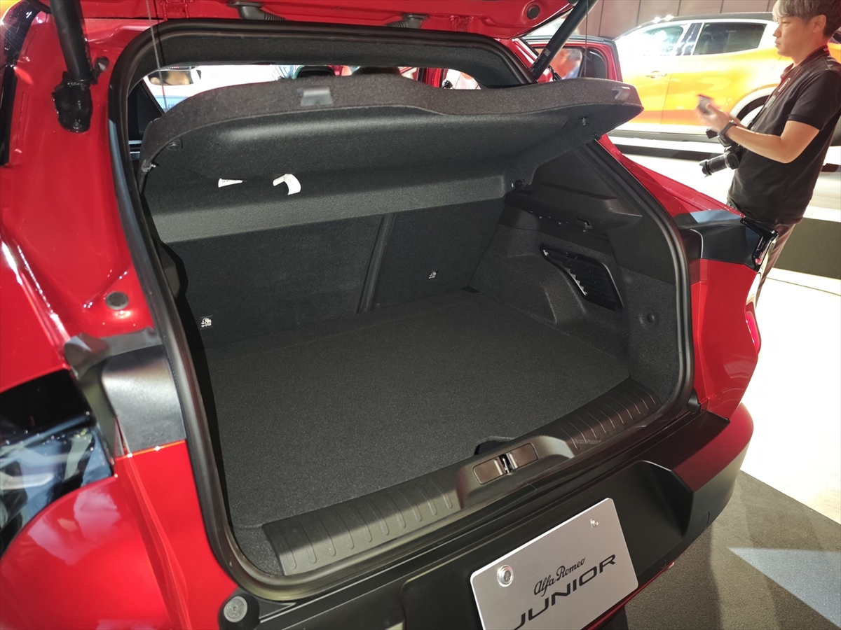 ボディーサイズは全長4195m×全幅1780×全高1585mm、重さは1330kg(SPECIALEは1340kg)。日本の都市部でも扱いやすいコンパクトボディーでありながら、400リットル(エレットリカ)または415リットル(イブリダ)というクラス有数の大容量ラゲッジスペースを確保。ハンズフリー機能付き電動テールゲートも装備され、荷物の出し入れが容易です。