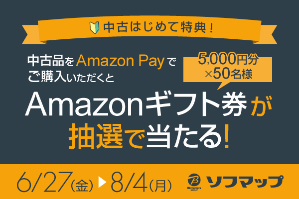 ソフマップは8月4日10時までの期間、同社のオンラインショップにてAmazon Payを利用して中古品を購入する顧客を対象に、抽選で5,000円分のアマゾンギフトカードが当たるキャンペーンを実施している。
