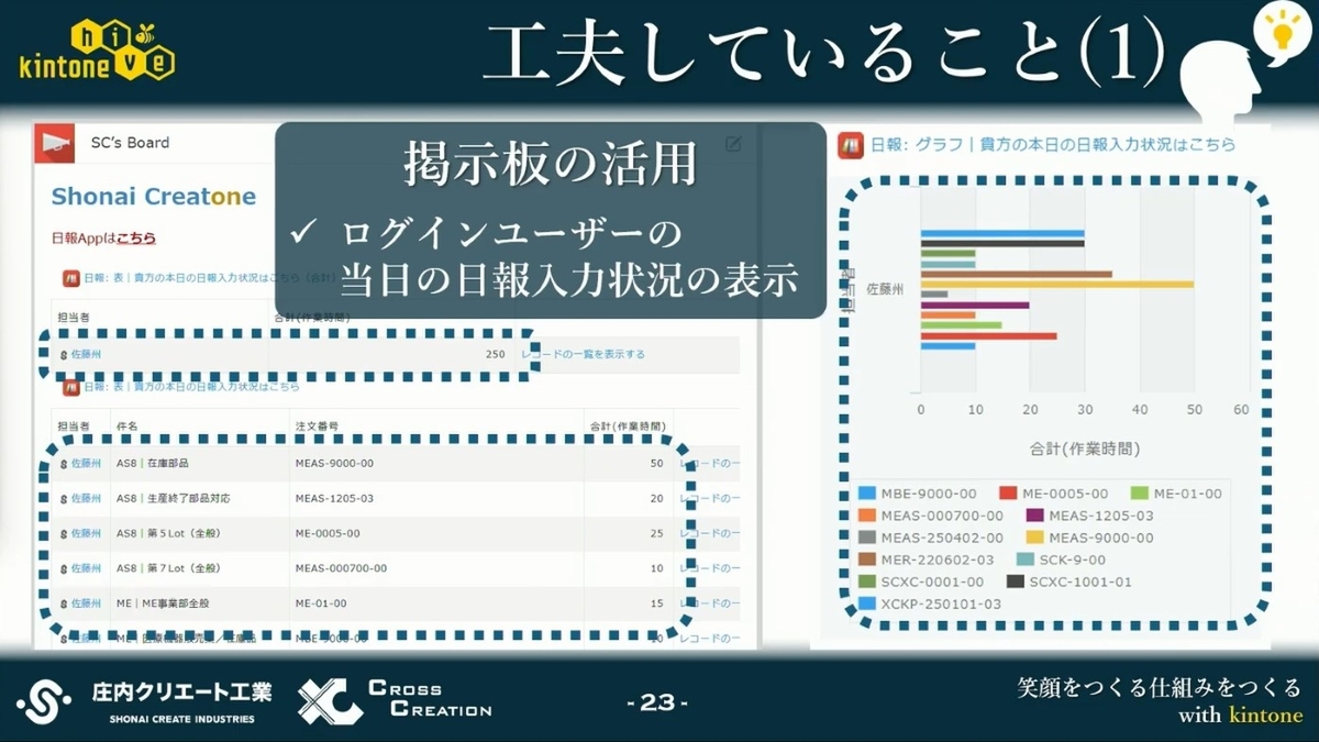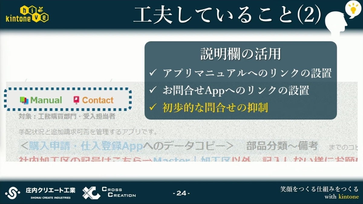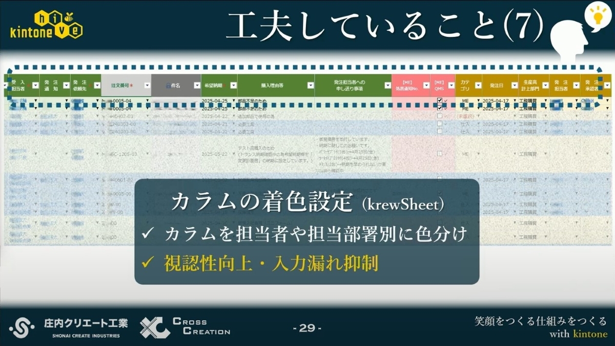 ここからは、庄内クリエート工業がkintoneアプリを作る中で実践した、kintoneユーザーならすぐにでも使える“7個の工夫”を紹介する。