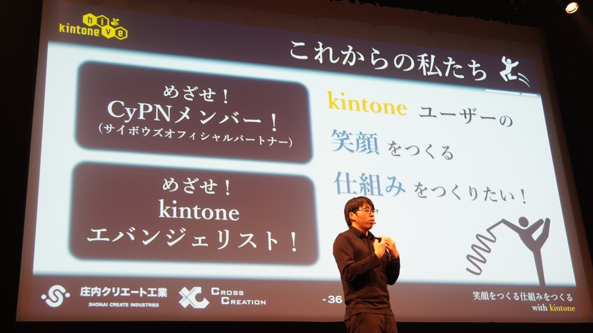 今後は、kintoneのカイゼンを社外にも広げていく予定だ。サイボウズのオフィシャルパートナーやkintoneのエバンジェリストを目指し、今度は“kintoneユーザーの笑顔”を生み出していく。