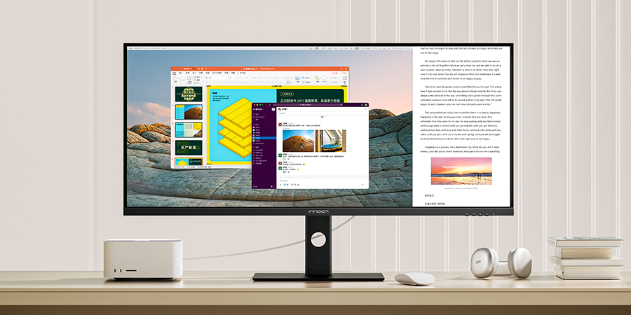 INNOCN 40C1Uは、デスク上でさらなる創造性を解き放つために設計された5Kフラットモニターだ。特徴は、40インチフラットIPSパネルと5K解像度を備えたウルトラワイド21:9画面。HDR400対応のこのディスプレイは、中央にベゼルがないため没入感のある視覚体験を提供し、強い照明下でも反射を抑えるマット仕上げが施されている。
