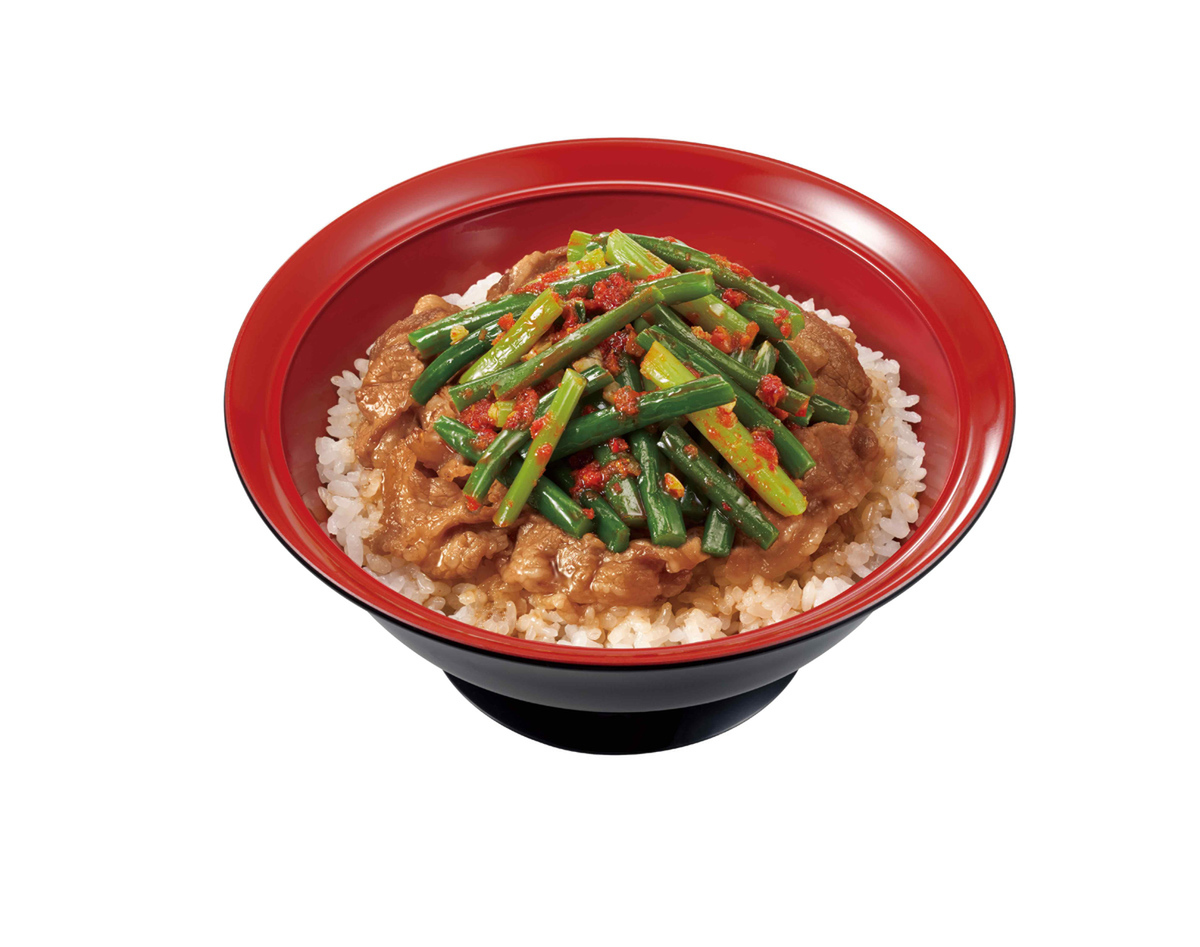 「ニンニクの芽牛丼」はすき家の夏の定番商品。特製の旨辛だれで和えたシャキシャキ食感のニンニクの芽を牛丼の上にのせた一品です。