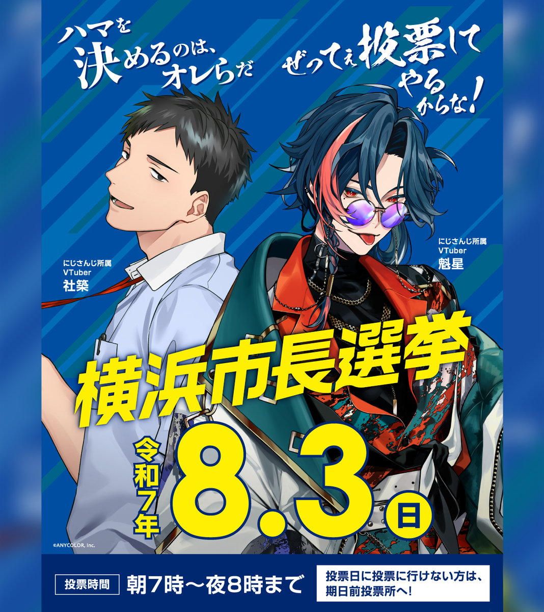 起用されたのは社築(やしろきずく)さん、魁星(かいせい)さん。「ハマを決めるのは、オレらだ」「ぜってぇ投票してやるからな!」というメッセージも寄せられています。