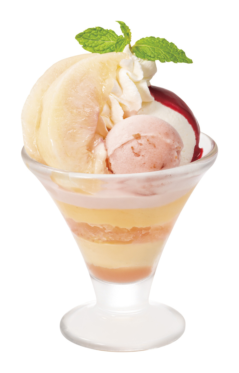 みずみずしい桃をお手頃サイズのパルフェに。ピーチゼリーや桃クリームなどを盛り合わせて風味豊かに仕立てている。