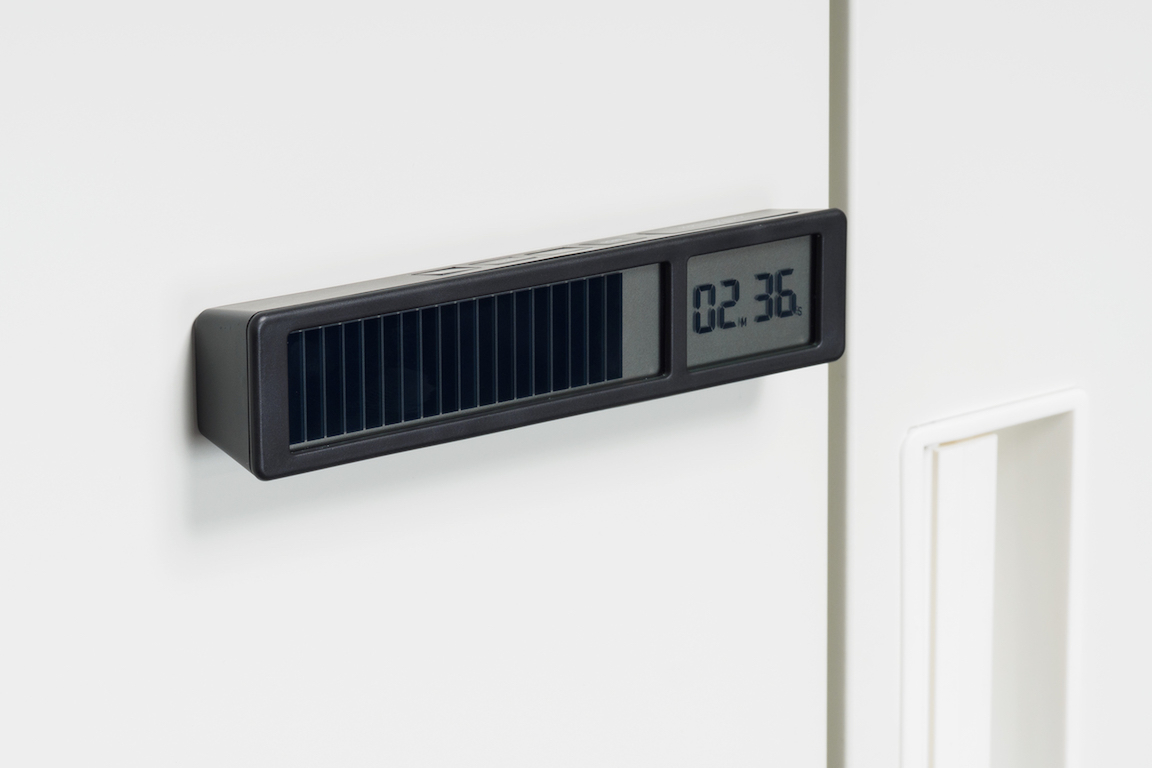 本体は非常にコンパクトで、裏面のマグネットでスチールラックなどに取り付けられます。机の仕切りや冷蔵庫、スチールラックなど、金属面があればどこでも設置でき、インテリアに自然に馴染むシンプルなデザインも好印象です。
