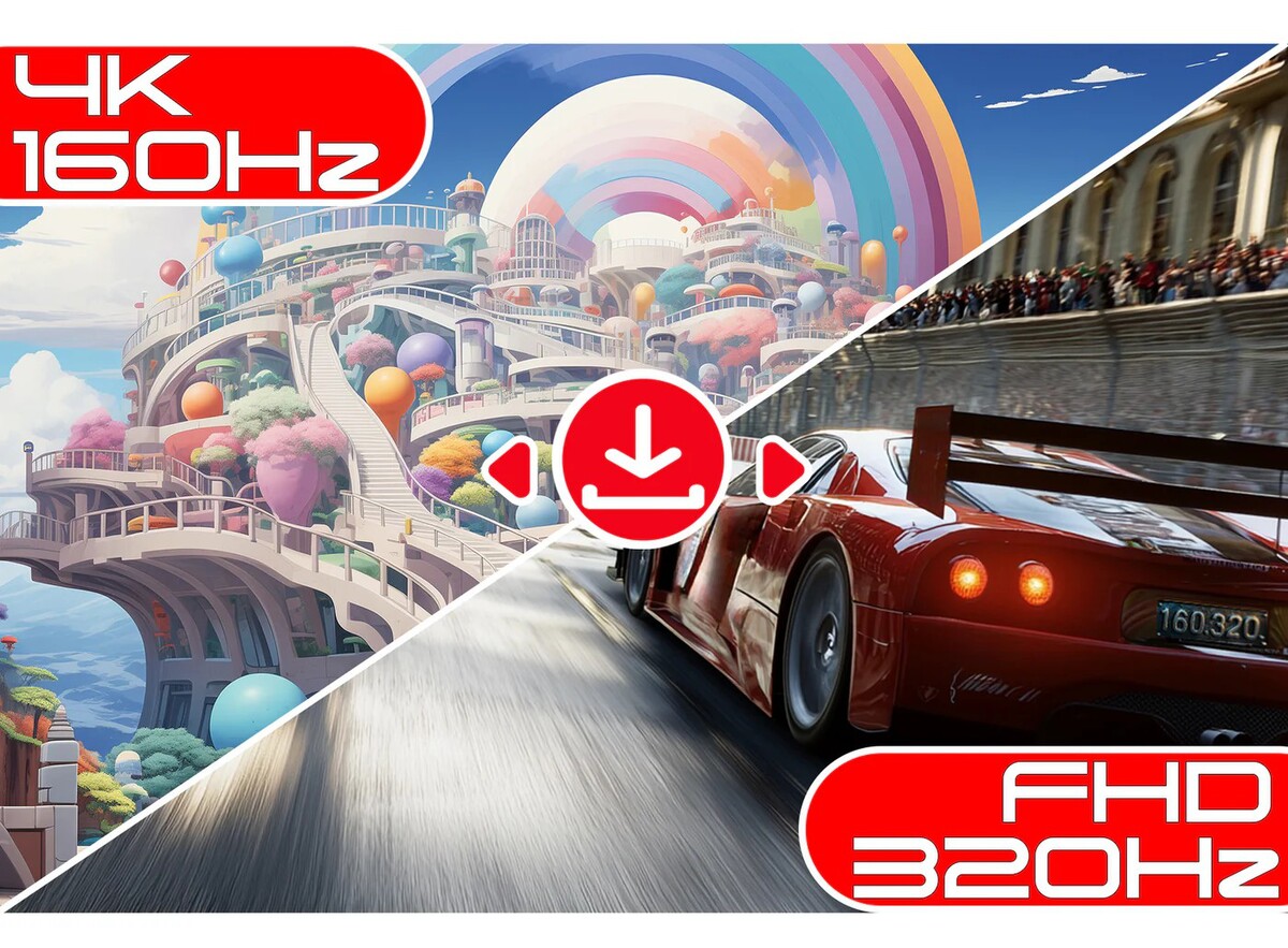 もう1つの驚きは、フルHD/320Hzと4K/160Hzをボタンで切り替えられることだ。解像度の切り替え方は、JN-IPS27G1632UF-HSP本体の[▲]ボタンを押すだけ。ボタンを押したあときに一瞬だけ画面が暗くなり、ほどなくして別の解像度に切り替わるイメージだ。