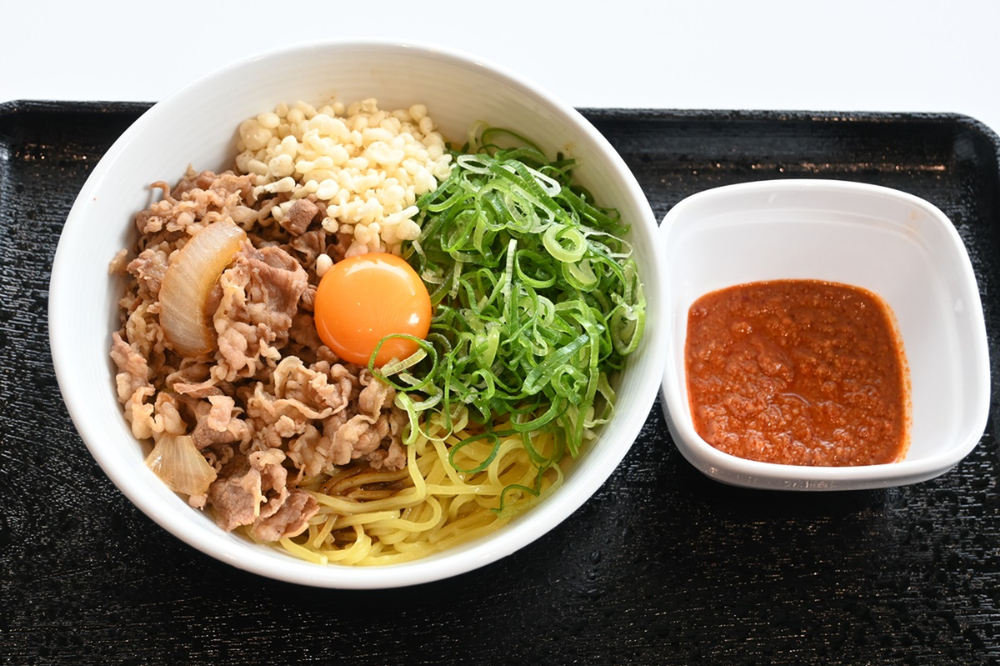 牛丼チェーン吉野家は「牛玉スタミナまぜそば」を7月4日11時から発売します。一杯767円(テイクアウト753円)。