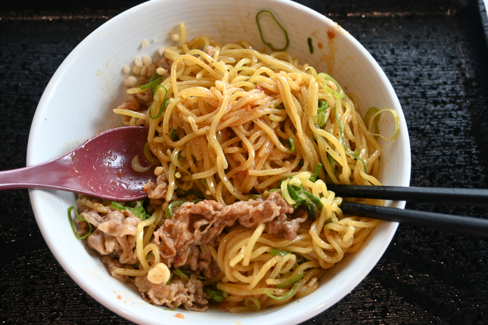 「台湾まぜそば」や「油そば」、あるいは有名ラーメン店の汁なし麺といった一般的なまぜそばイメージとはまた違う、吉野家らしい個性が光る一杯でした。にんにく好きな人はヤミツキになること間違いなし!