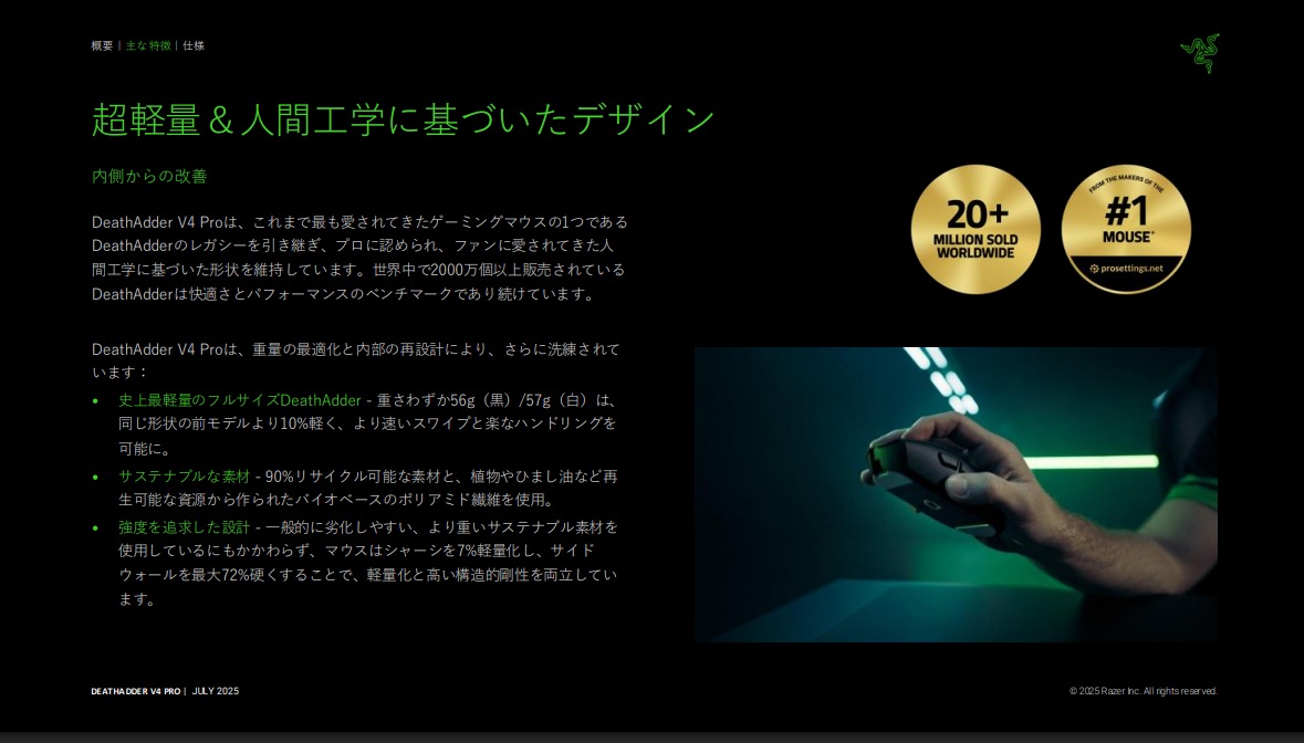 Razer、プロゲーマーの意見を取り入れたゲーミングマウス「DeathAdder V4 Pro」を発表