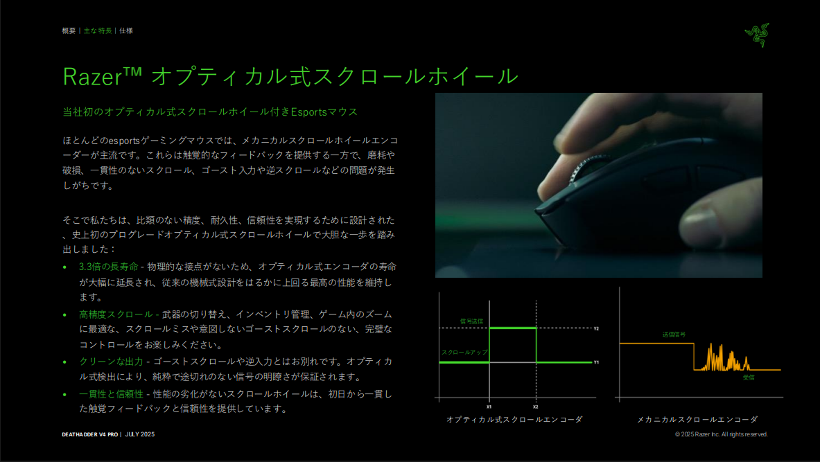 DeathAdderシリーズは、プロのeスポーツシーンでも支持されてきた定番モデルだが、今回のV4 Proでは、形状や使い心地を変えることなく、内部構造と主要テクノロジーを全面的に刷新。