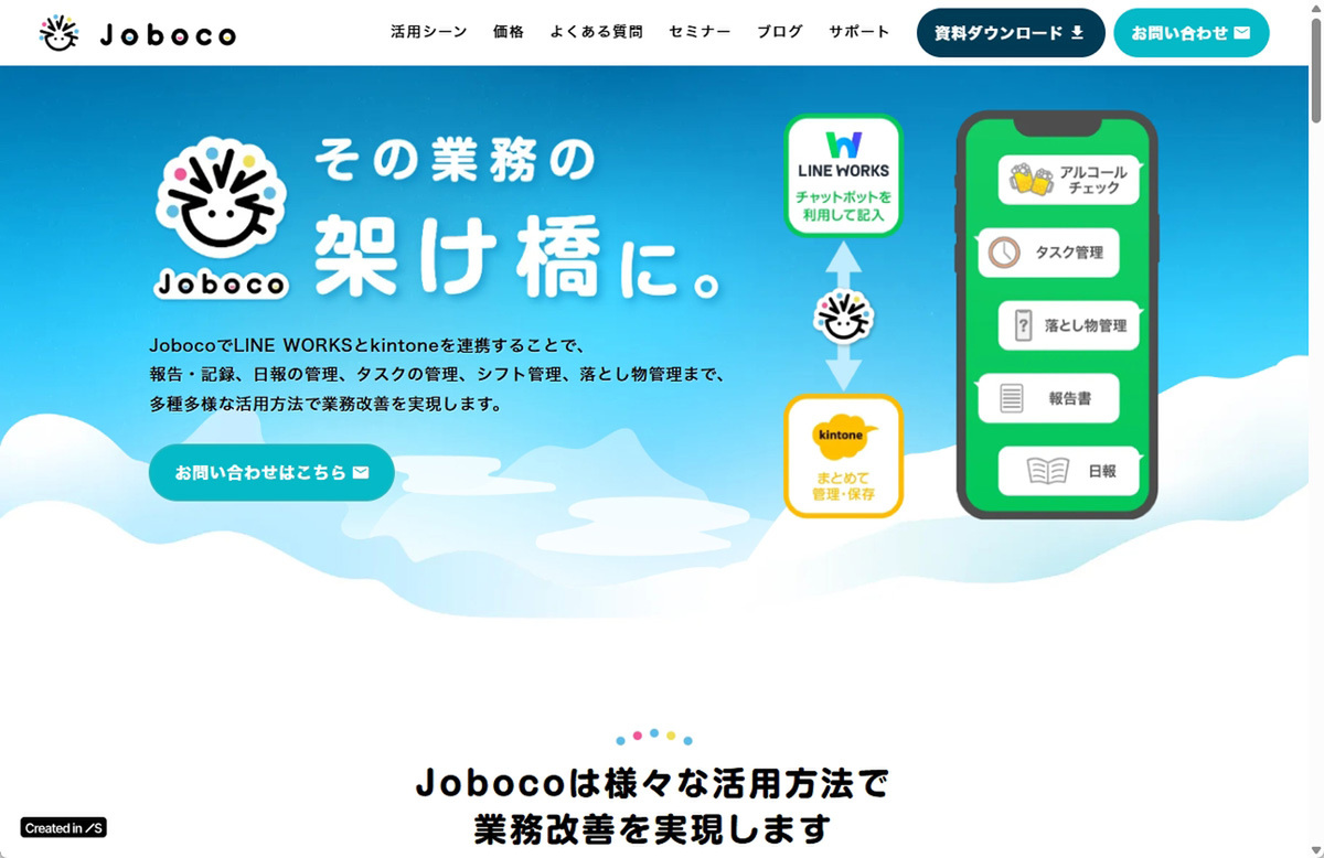 「Joboco」でLINE WORKSとkintone、「Smart at AI」を連携させる