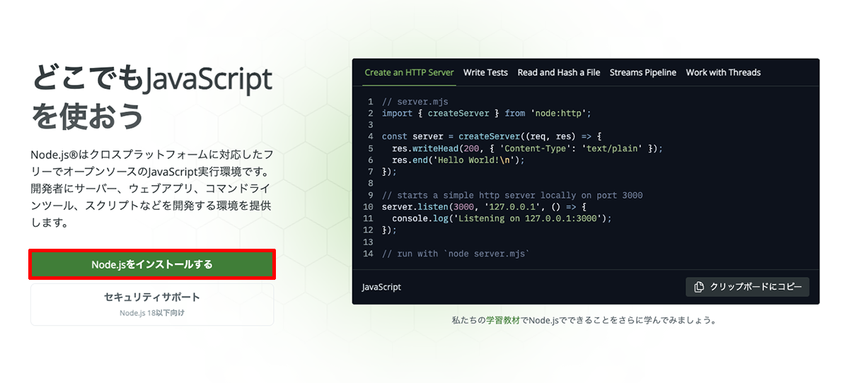 事前準備:Node.jsのインストール