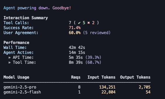 なお、/quitで終了すると、そのセッションでのやり取りの統計がまとめられた「サマリー」が表示される。どのモデルが何回使われたか、成功率や処理時間などが視覚的に確認できるため、セッションごとの振り返りに便利だ。