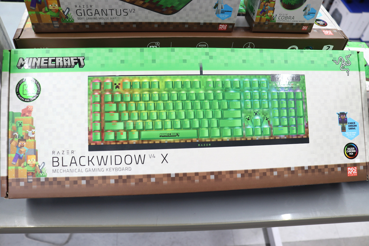 なお、今回のコラボレーションでは、ゲーミングキーボードだけでなく、ゲーミングマウス「Razer Cobra Minecraft Edition」、ヘッドセット「Razer Kraken V4 X Minecraft Edition」、マウスパッド「Razer Gigantus V2 M Minecraft Edition」も同時に発売されました。いずれも、Minecraftのクリーパーをモチーフにしたデザインが施されています。