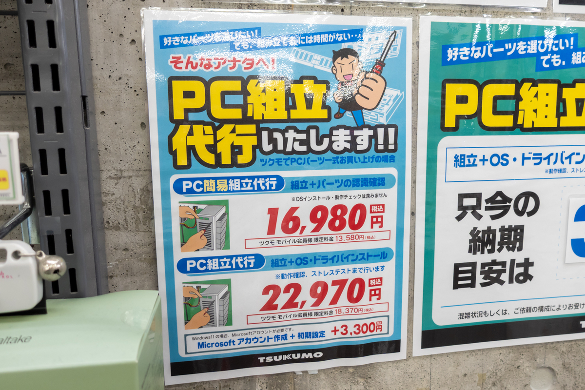 本自作レシピのポイントのひとつは、”組み立てやすさ”にある。とはいえ、自分で組むのは自信がない人もいるだろう。そこで、TSUKUMOeX.(ツクモ本店でも実施中)では組み立て代行サービスを行なっている。昨年末から年明けのモンハンワイルズ需要時は、数ヵ月待ちにもなっていた人気のサービスだ。