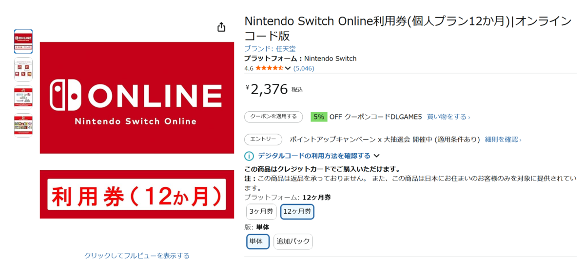 | Nintendo Switch Online利用券(個人プラン12か月)|オンラインコード版 |