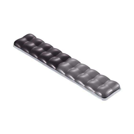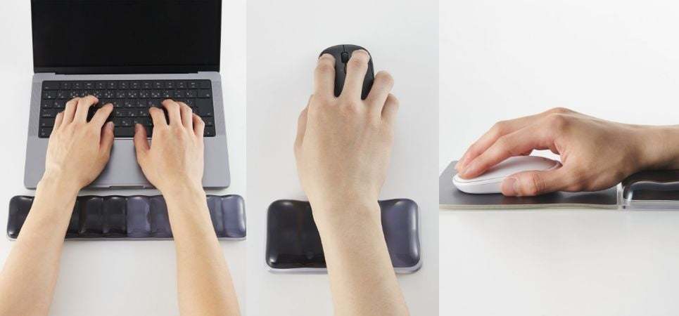 新製品は、手首に優しくフィットする程よい弾力のゲルを使用しており、疲れにくい作りになっている。さらに、独自の凹凸デザインにより手首とリストレストの間に隙間を作り、通気性を確保。これにより、長時間の使用でもムレにくく、快適な使い心地を実現しているという。