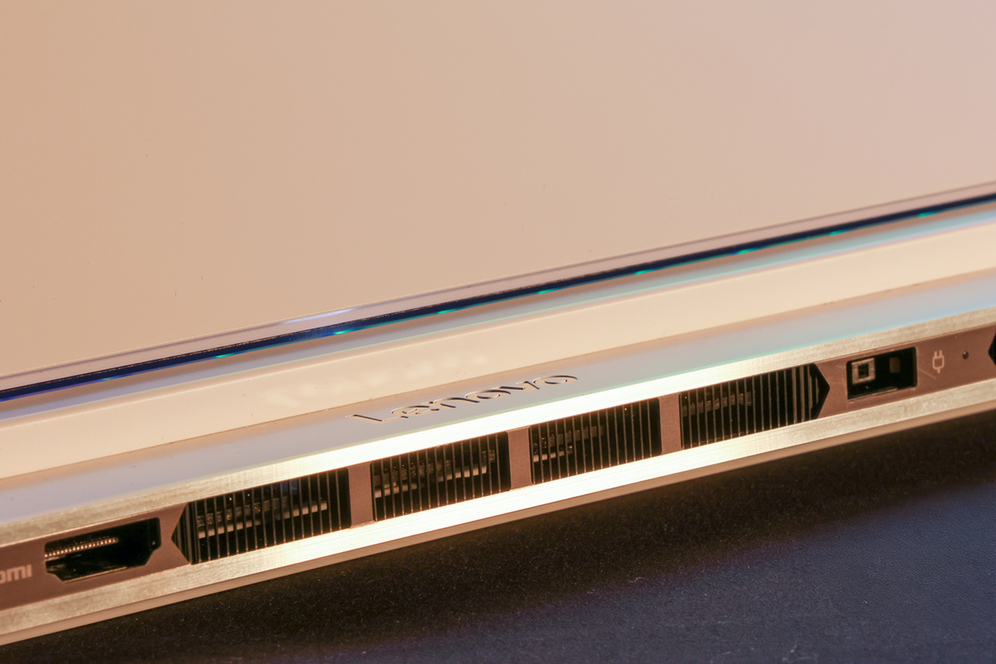 厚さは最厚部約15.9mm、重量は約2kgと、16インチのハイスペックモデルとしては薄型で持ち運びも可能な製品です。薄型だと心配になる冷却性能ですが、底面と背面に大きな吸排気口があります。