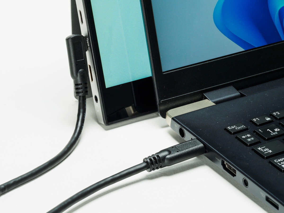 これに対して、USB-C接続なら、たった1本のUSB-Cケーブルですべてが完結する。映像信号の伝送と電力供給を同時に行えるため、モバイルディスプレーならノートPCから給電して動作可能だ。もし電源の確保が難しい場所だったとしても、慌てることなくマルチディスプレー環境を構築できるのは大きな魅力だ。