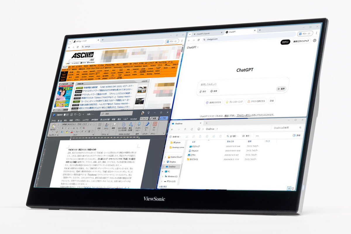 さらに、ベゼルの細さも重要だ。ベゼルが細いと2つの画面の境界が目立ちにくく、つながって見えるために広範囲の情報を俯瞰しやすくなる。また、没入感が向上するため、映像制作やゲームプレイなど、視覚的な一貫性が求められる場面でも有利だ。
