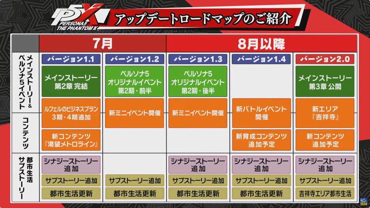 セガより配信中の新作RPG「ペルソナ5: The Phantom X」(以下、ペルソナ5X)。その公式生放送が7月9日に配信され、7月10日にアップデートが実施されることがわかった。メンテナンス時間は11時~18時の予定。