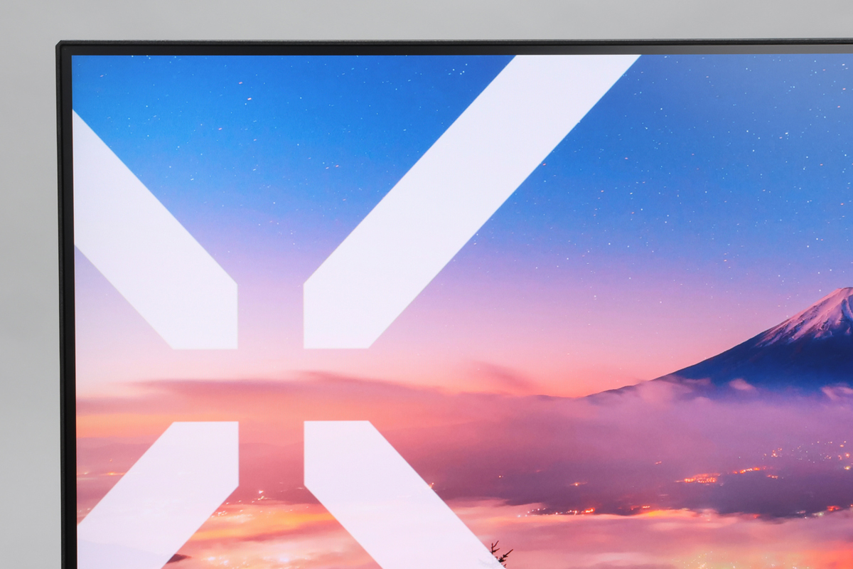本体サイズは、およそ幅558×高さ330×奥行58mmで、画面の比率としては24.5型に該当する。24.5型は一般的なサイズ感で、コンパクトで扱いやすく、省スペース化を実現できる。おまけに、小型のサイズによって開封後の組み立てが容易になる点もポイントだ。
