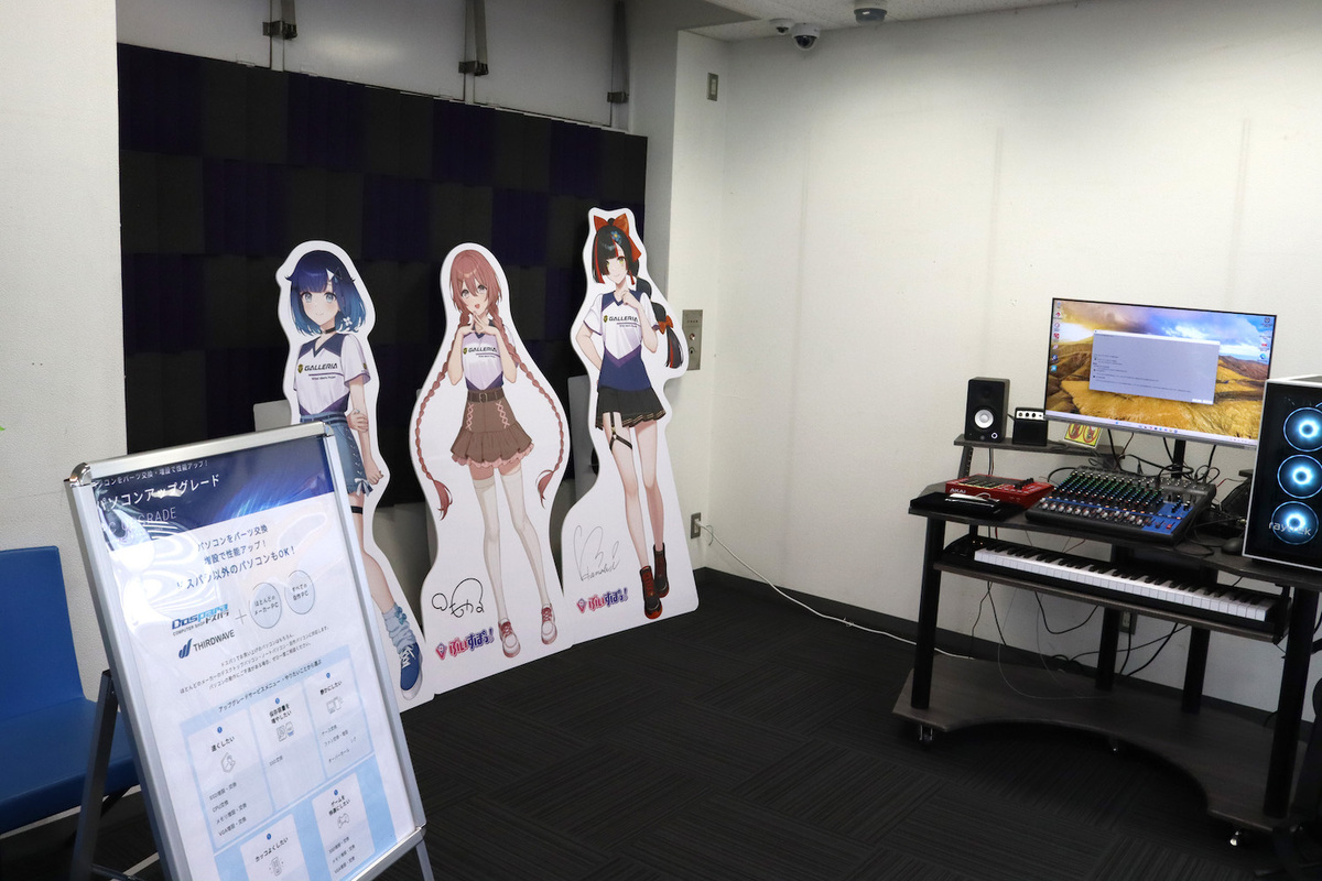 4階は中古買取受付およびサポートのフロアとなっています。現在、GALLERIAでコラボPCを展開しているキャラクターの等身大パネルも展示中。パネルを見に来るだけでも「ぜひ4階に足を運んでみてください」とのこと。