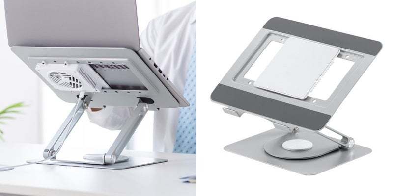 また、本製品は冷却プレートの位置を自由に調整できるため、CPUやバッテリーなどの熱発生源を効率よく冷却できる点でも優れている。さらに、無段階での高さと角度調整が可能なため、作業環境に合わせたカスタマイズが可能とのこと。360度回転する台座は、どんなワークスペースにも対応し、Web会議やプレゼンテーションでも活躍するだろう。