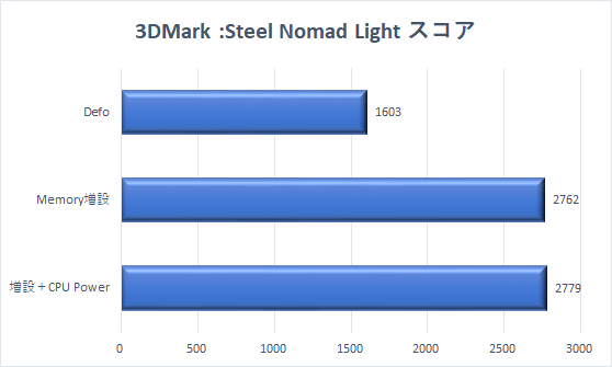 「Steel Nomad Light」は、最新世代のテストで、実行解像度も2560×1440ドットと高解像度になる。そのため、スコアは低く、平均フレームレートもカスタマイズ後でも、20fps台とゲームをプレイするには厳しい数値になっている。とはいえ、カスタマイズすることでスコアが1.7倍、フレームレートは2倍近くと、その効果はしっかりと現れている。