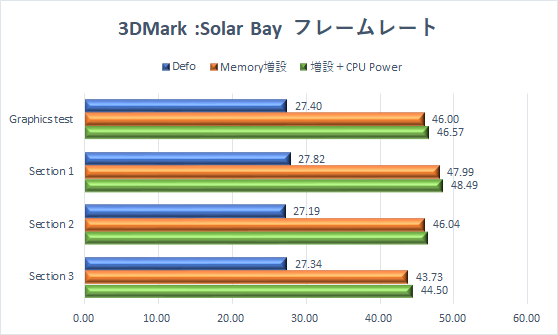 最後は、Android端末にも対応するマルチプラットフォームテスト「Solar Bay」だ。ここまでと同じく、カスタマイズすることでスコアとフレームレートは大きく伸ばしている。負荷の高いレイトレーシングを使っているため、フレームレートは60fpsに届かなかったが、テスト中の描画はスムーズだった。