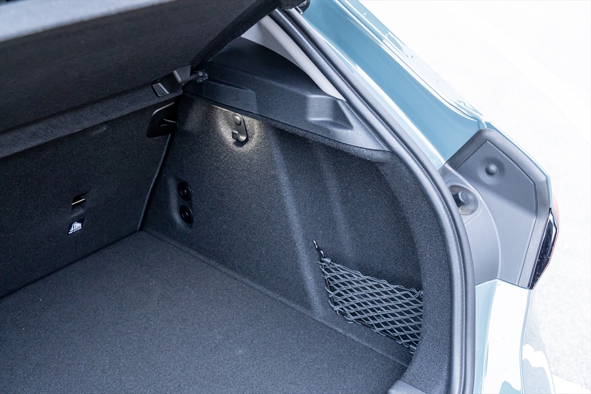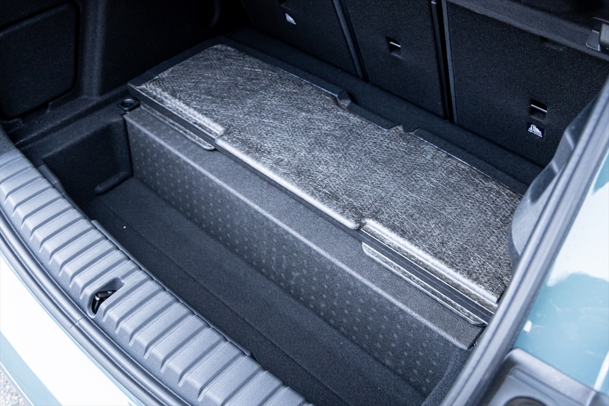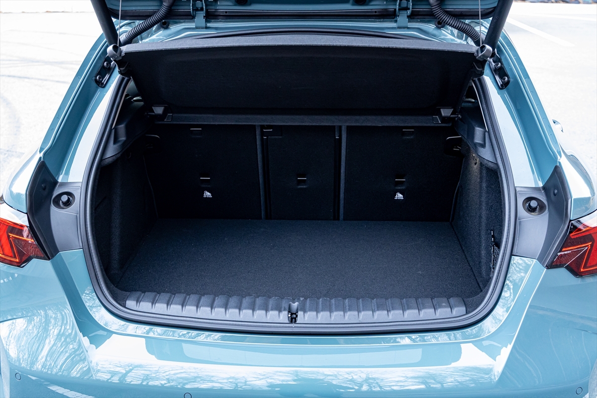 ハッチバックですので荷室が気になるところ。後席背もたれを立てた状態で380L、背もたれを倒すと1200Lと容積も十分です。トノカバーはフロアボードの下に収納できるようで、これも実にイイ感じ! 12Vアクセサリーソケットがないのは残念ですが、側面にはコンビニフックが備わっているほか、パワーゲートに対応しているなど、使い勝手の面でも考慮されています。