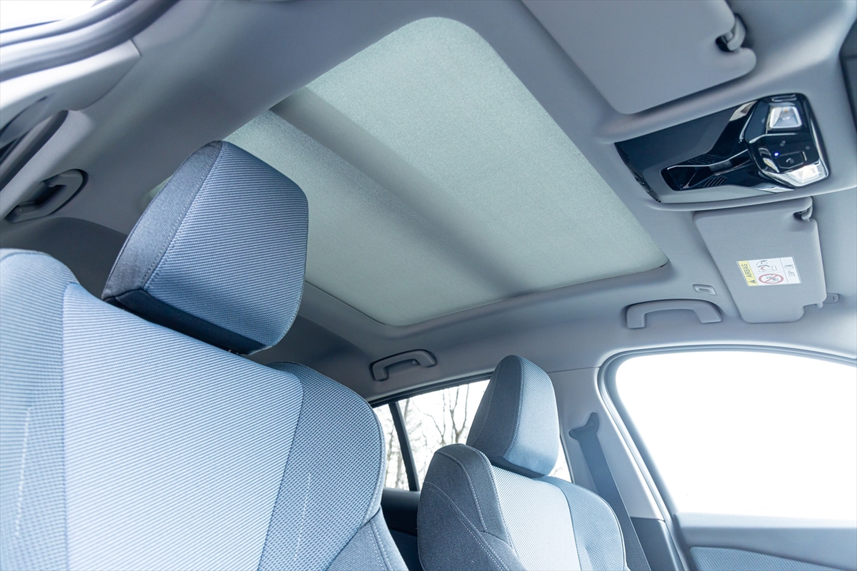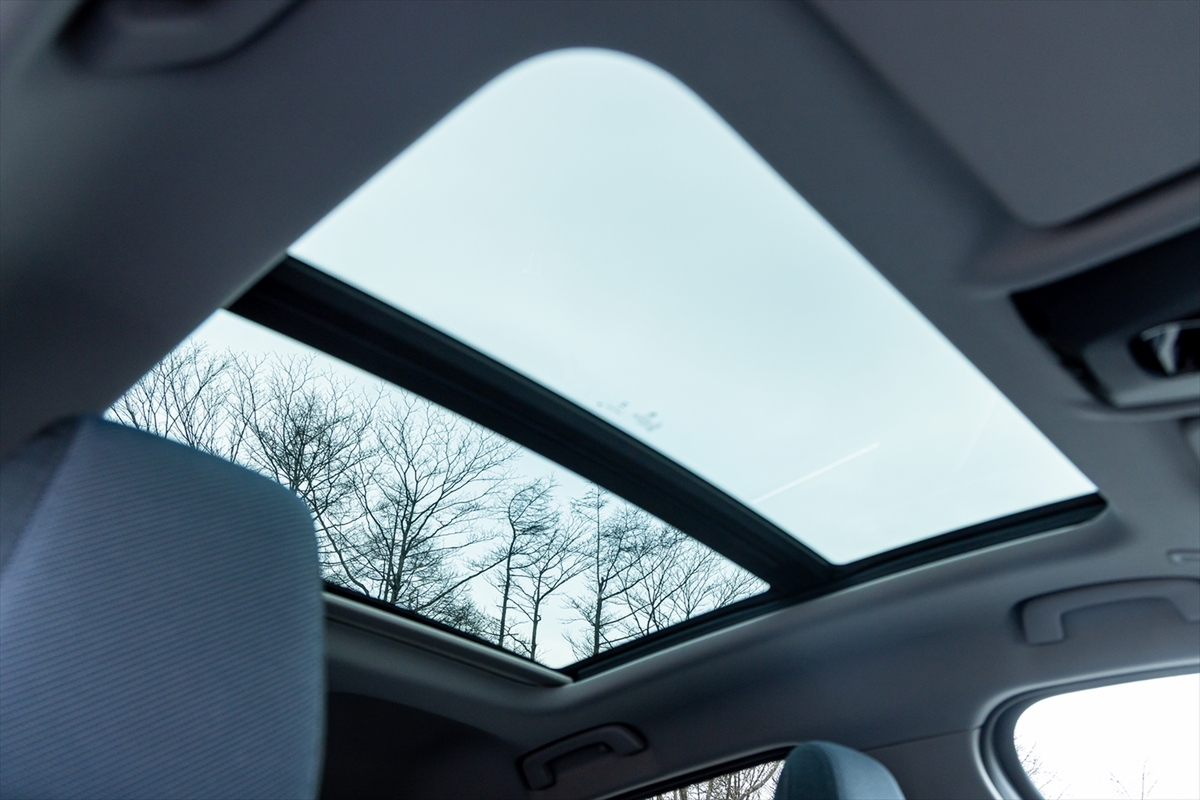 解放感たっぷりの電動パノラマ・ガラス・サンルーフは17万3000円。後席までガラスルーフなのはうれしいですね。