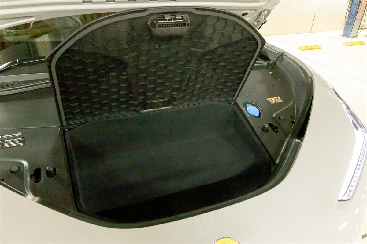ちなみにボンネットを開けると、46Lのストレージも用意されており、充電ケーブルなどを収納するのに活用できそうだ。