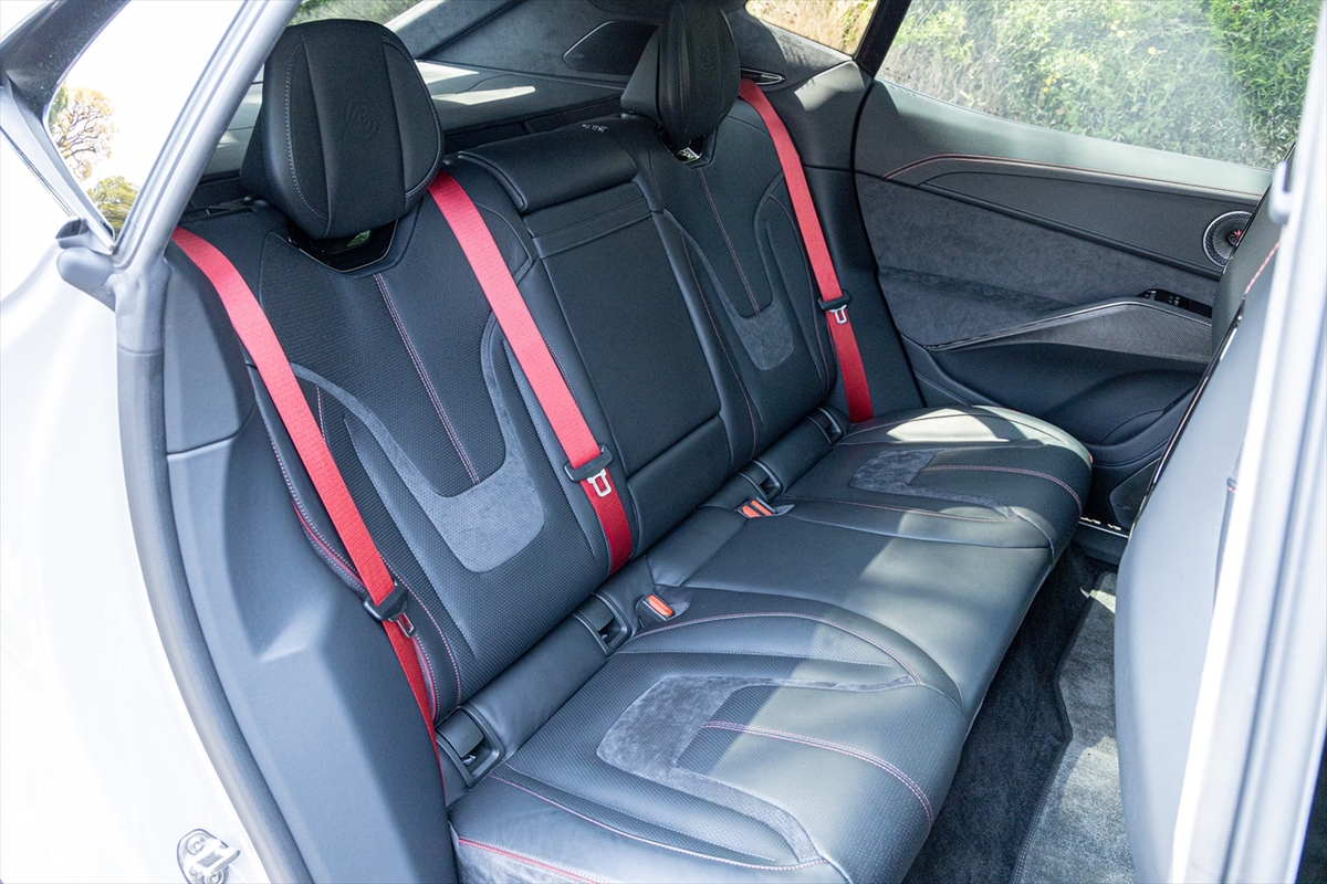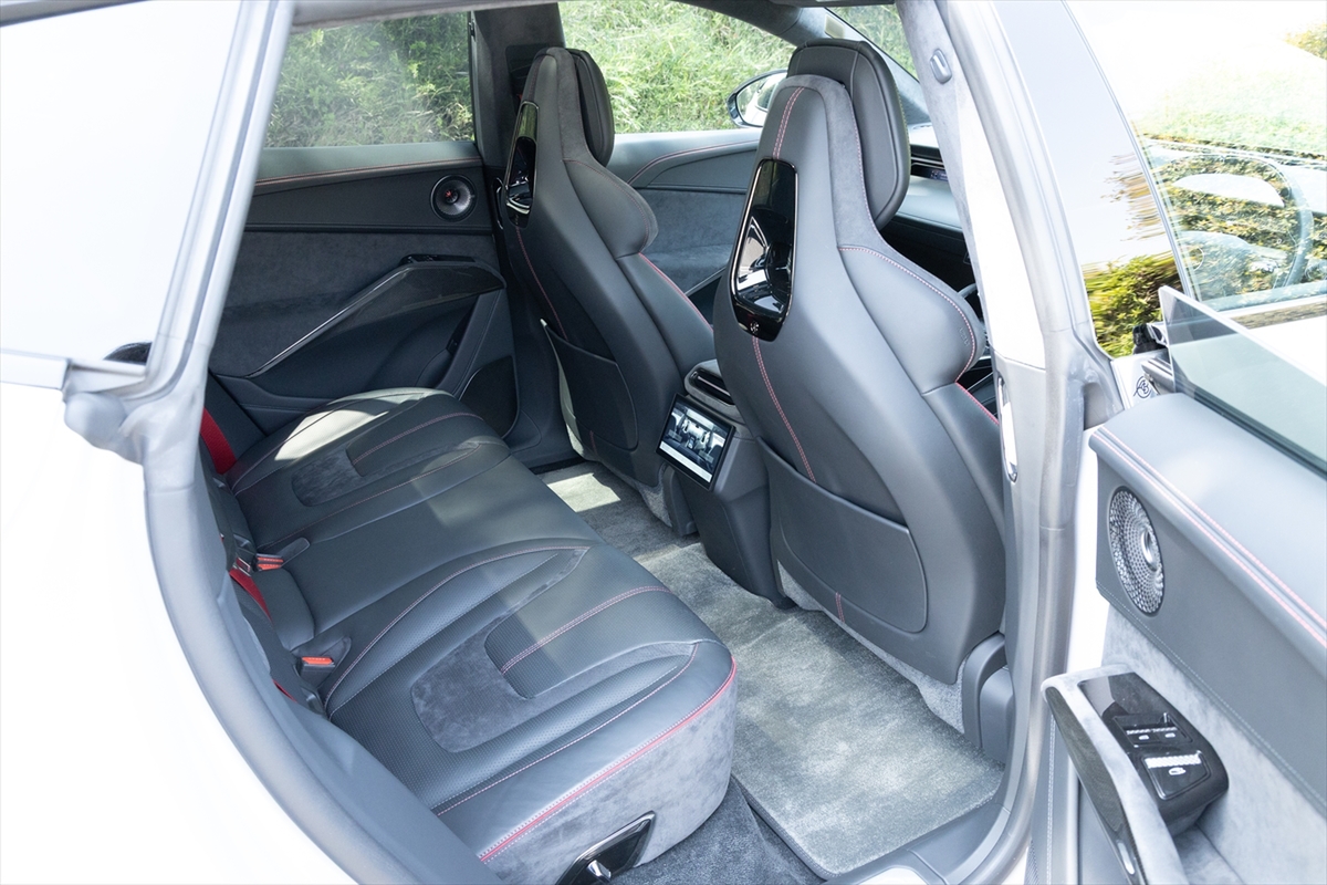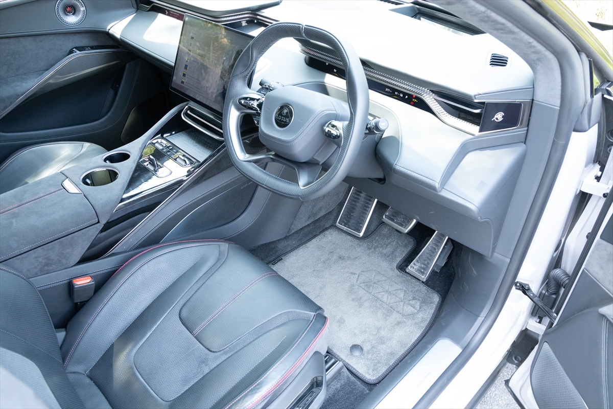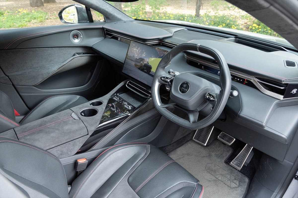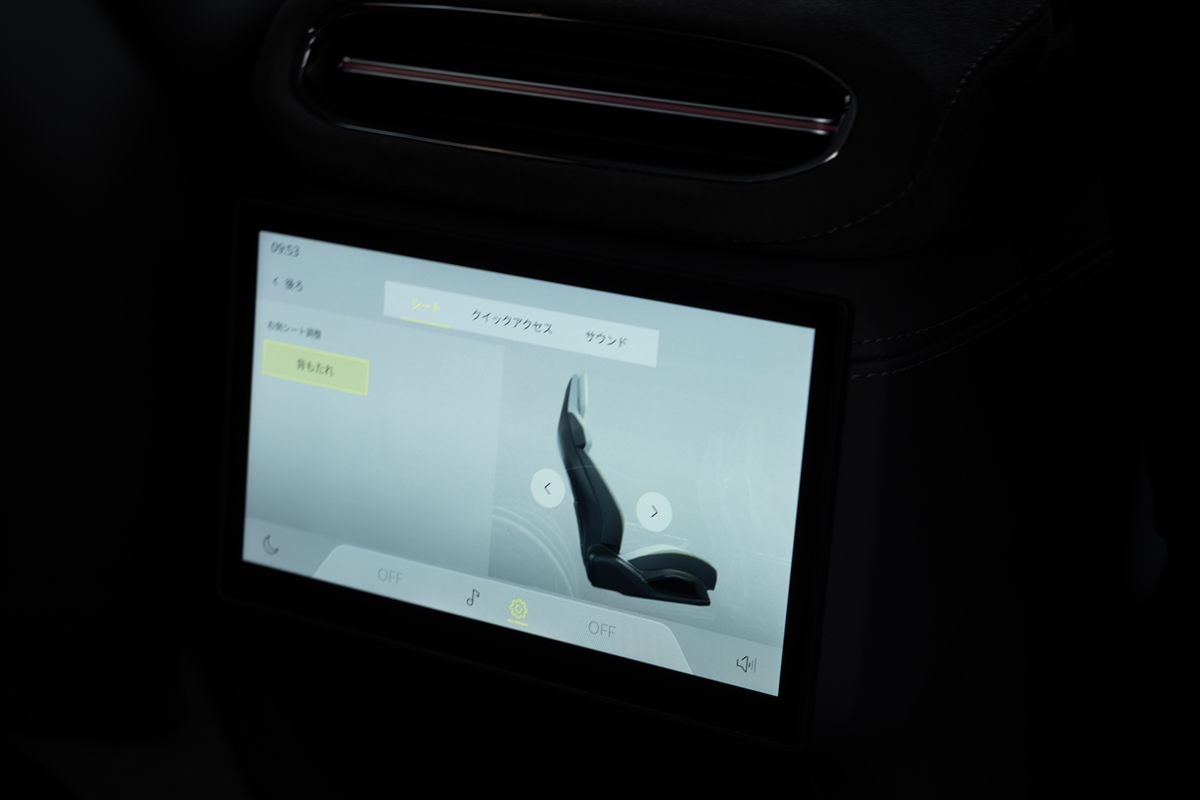 後席はリクライニング機構があり、センターコンソールの液晶ディスプレイで調整可能。リクライニング機構を動かすと、荷室のプライバシートレイが少し動いていることがわかった。「ここまでやるのか?」「本当にロータスなのか?」と良い意味で驚かされる。とても初めてラグジュアリーカーを作ったとは思えない仕立てで、他車をかなり研究したことと、優秀なエンジニアが在籍していることをうかがわせた。