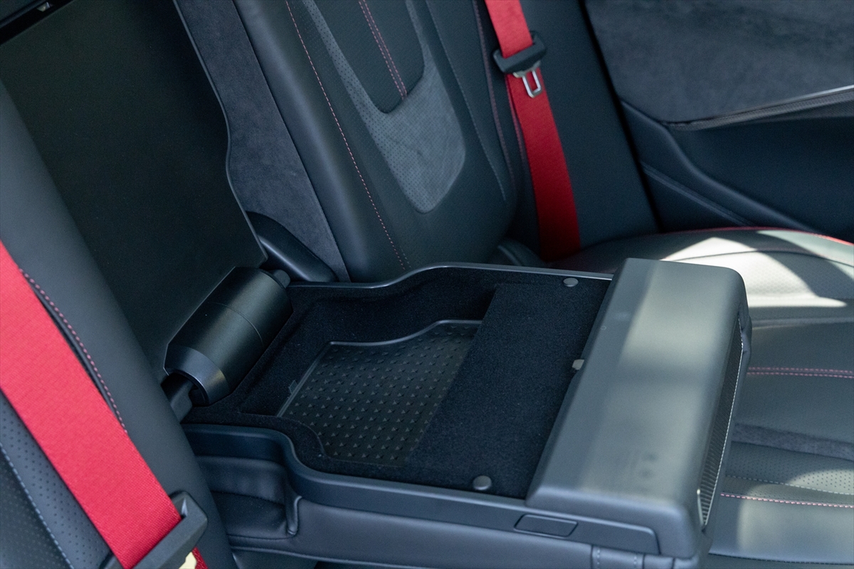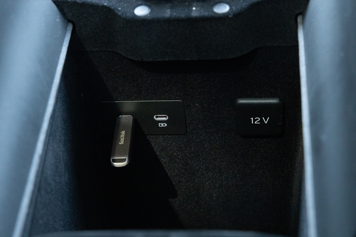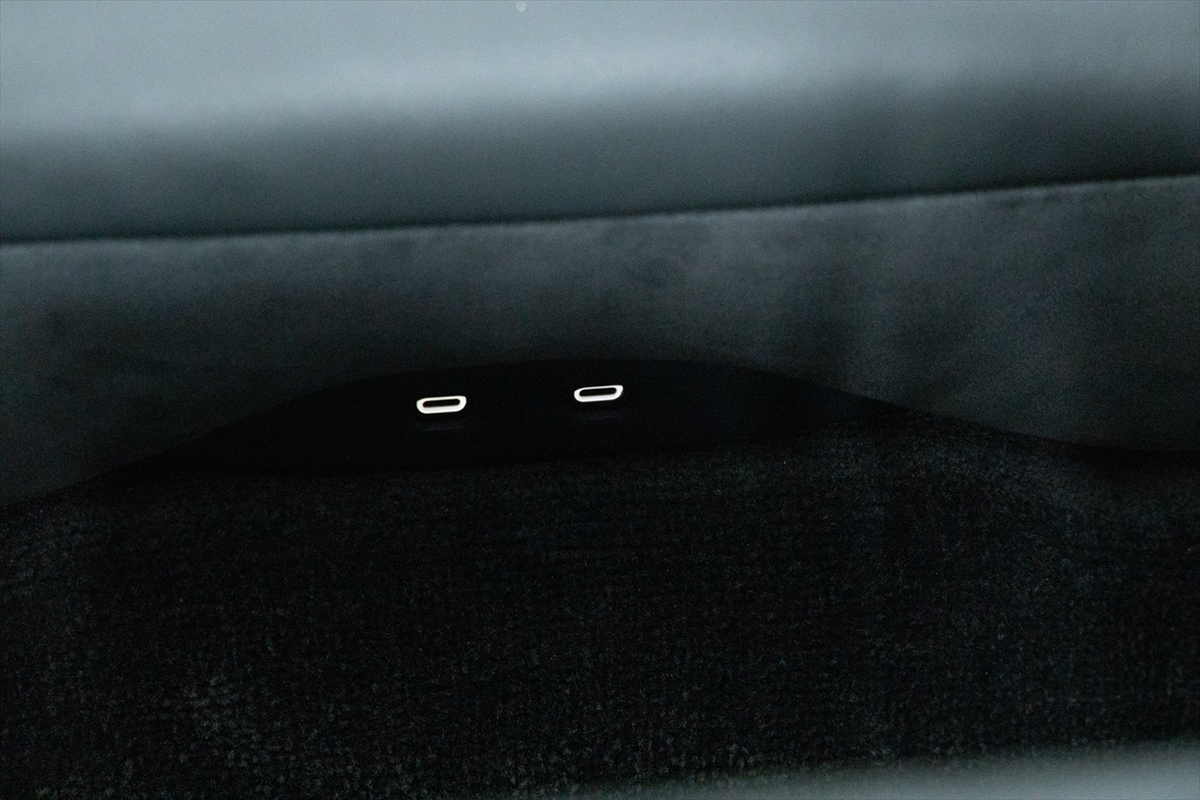 USBポートはすべてType-Cで、運転席側がアームレスト内部に2ポート、後席側が座面中央部に2ポート備える。車両とつながるのはアームレスト内部の助手席側で、Apple CarPlayとAndroid Autoに対応する。