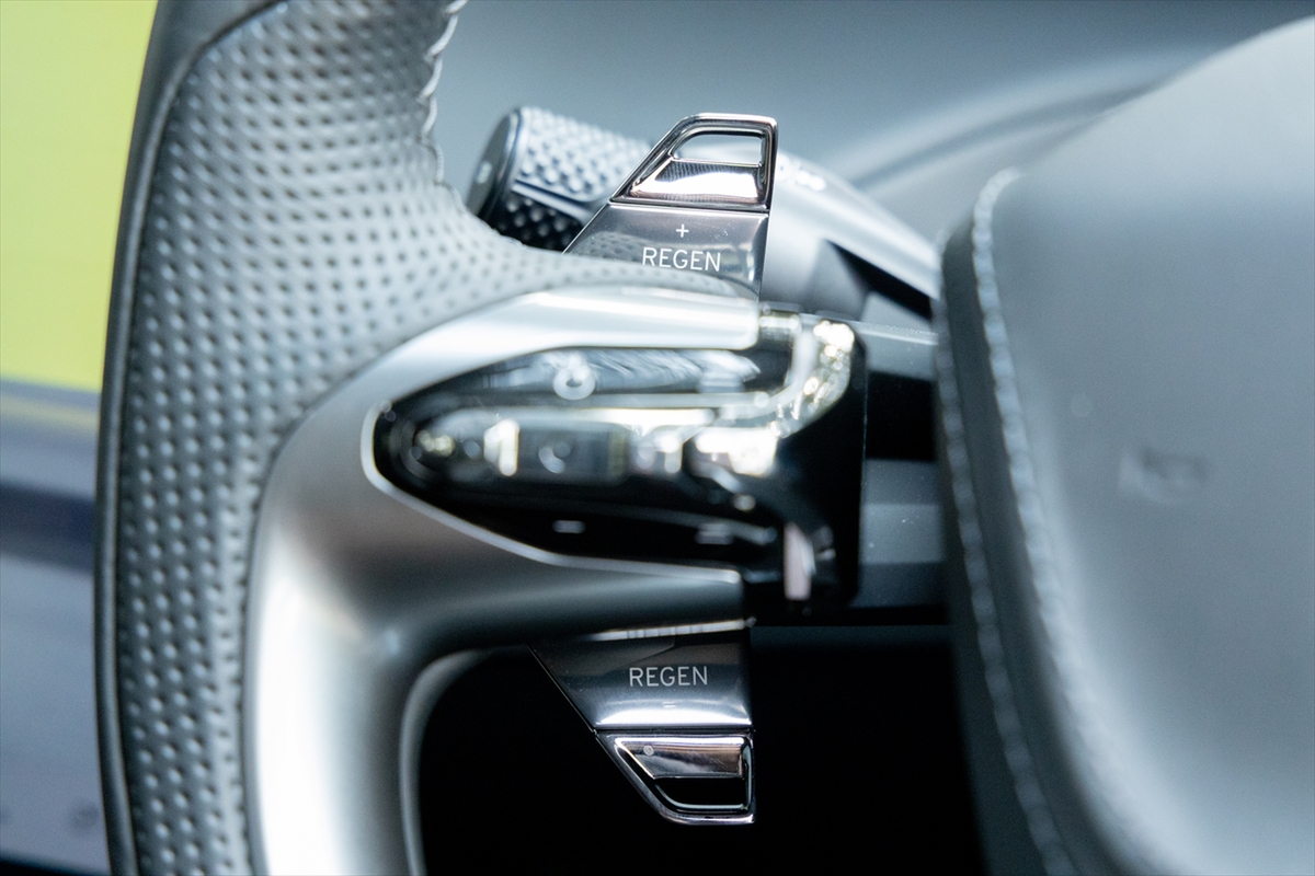 アクセルペダルはワンペダル動作にも対応。ステアリングホイール左手側のパドルスイッチで回生が4段階まで調整ができる。街乗りでは便利そのもの。ADASもしっかりしており、車線をはみ出せばパワーステアリングでグイッと戻そうとするし、高速道路では車線監視機能付きアダプティブクルーズ(前走車追従)が実に優秀。ライントレース機能がすこぶる高い。