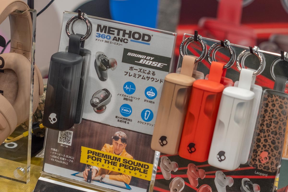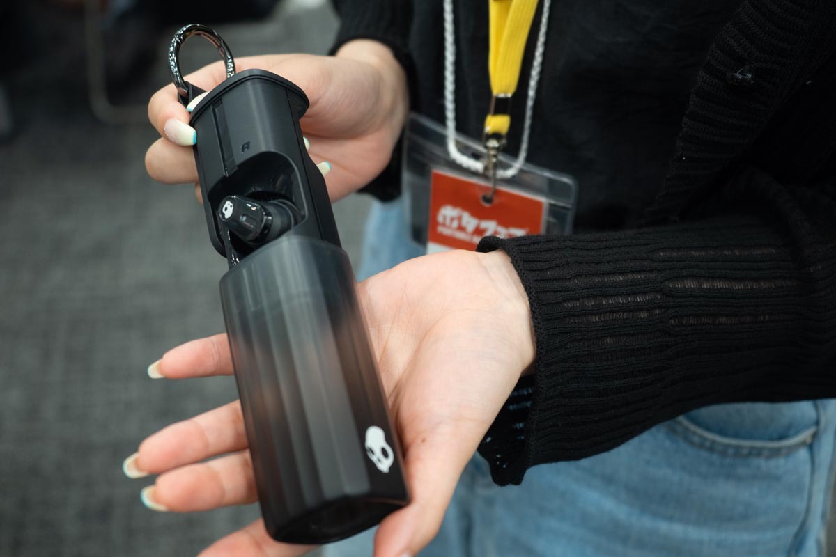 スカルキャンディーの「METHOD 360 ANC」はカラビナ(クリップ)のついた大きめのケースで持ち運べる目立つノイズキャンセルイヤホン。ボーズとタッグを組んだサウンドも特徴だ。どちらも低音を重視したブランドなので意外に相性がいいかもしれない。収納時には左右がたがい違いに入る仕組みになっており、区別がつきやすく収納/取り出しがしやすそうだ。直販価格は2万円弱。8月1日予約開始。