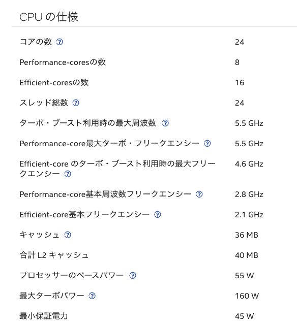 CPUの情報:「CPU-Z」にて取得。Pコア8基+Eコア16基という構成はデスクトップPC向けのフラッグシップモデルであるCore Ultra 9 285Kと同じ。ただし、ノートPC向けのArrow Lake-HXなので省電力になっている