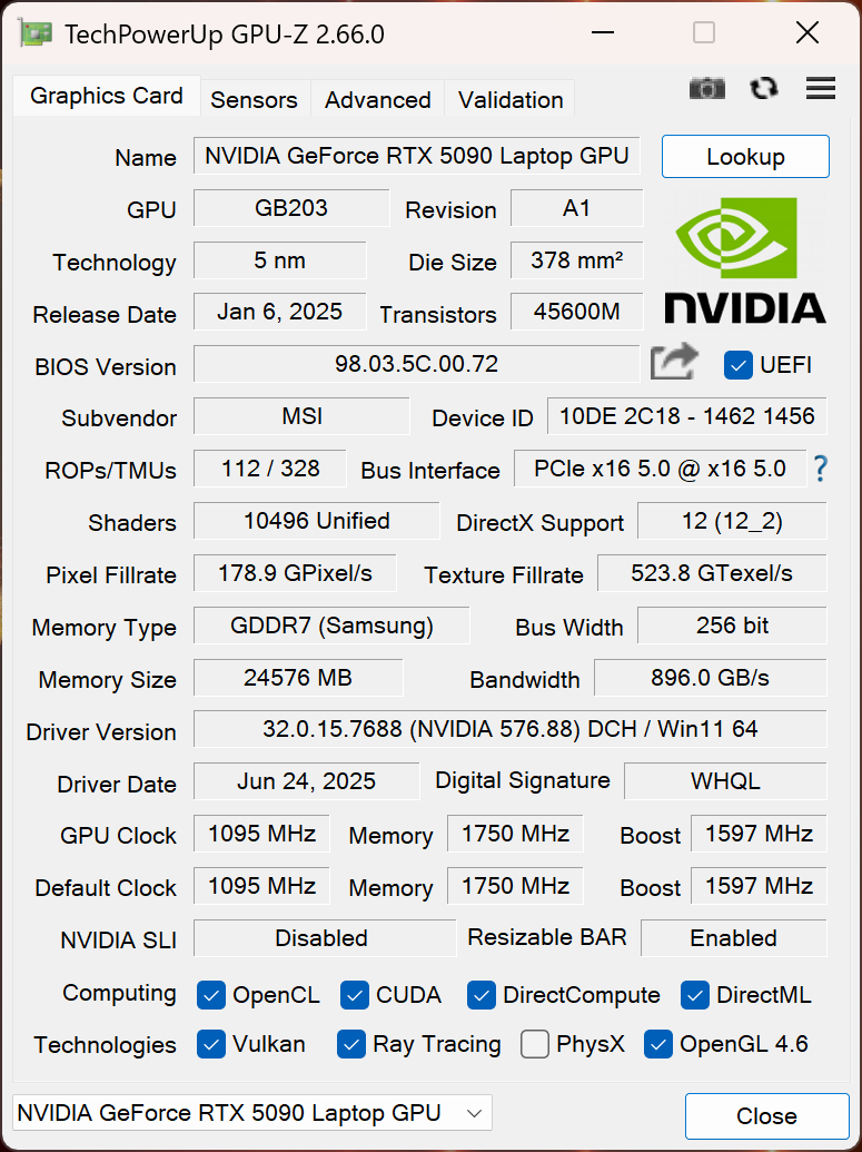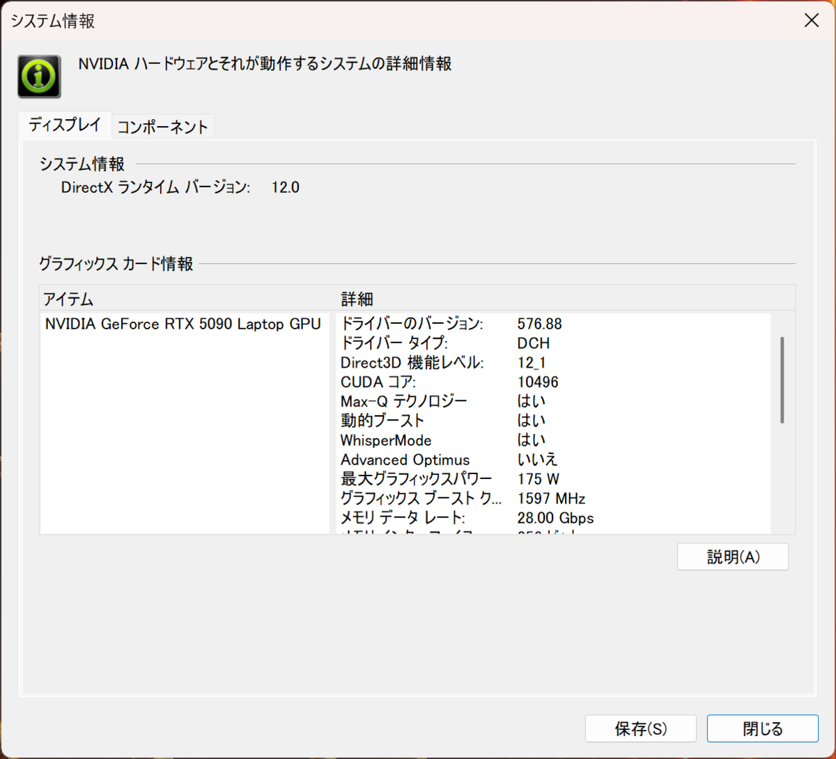 そして、GPUはRTX 5090 LT。このGPUは既に別製品でレビューしている通り、デスクトップPC向けのRTX 5080を少しスリムにして、かわりにVRAMを24GBに大増量したもの。24GBのVRAMは3840×2400ドットの等倍表示でゲームを楽しみたい人向けというよりも、ローカル環境で重いAIを動かしたい人向けの装備である。