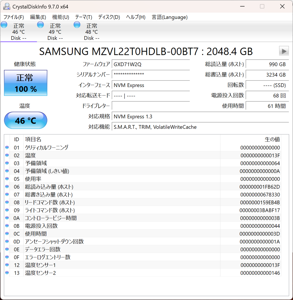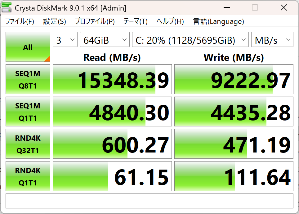 最後にSSDにも触れておこう。Titan 18 HXのストレージ容量は6TBだが、これは2TBのNVMe SSD(すべてPCI Express 4.0接続)を3枚、RAID 0ボリュームでまとめたものである。MSIによれば、このRAID 0ボリュームを構成するSSDのうち1基は、PCI Express 5.0対応のスロットに入っているとのことだ。